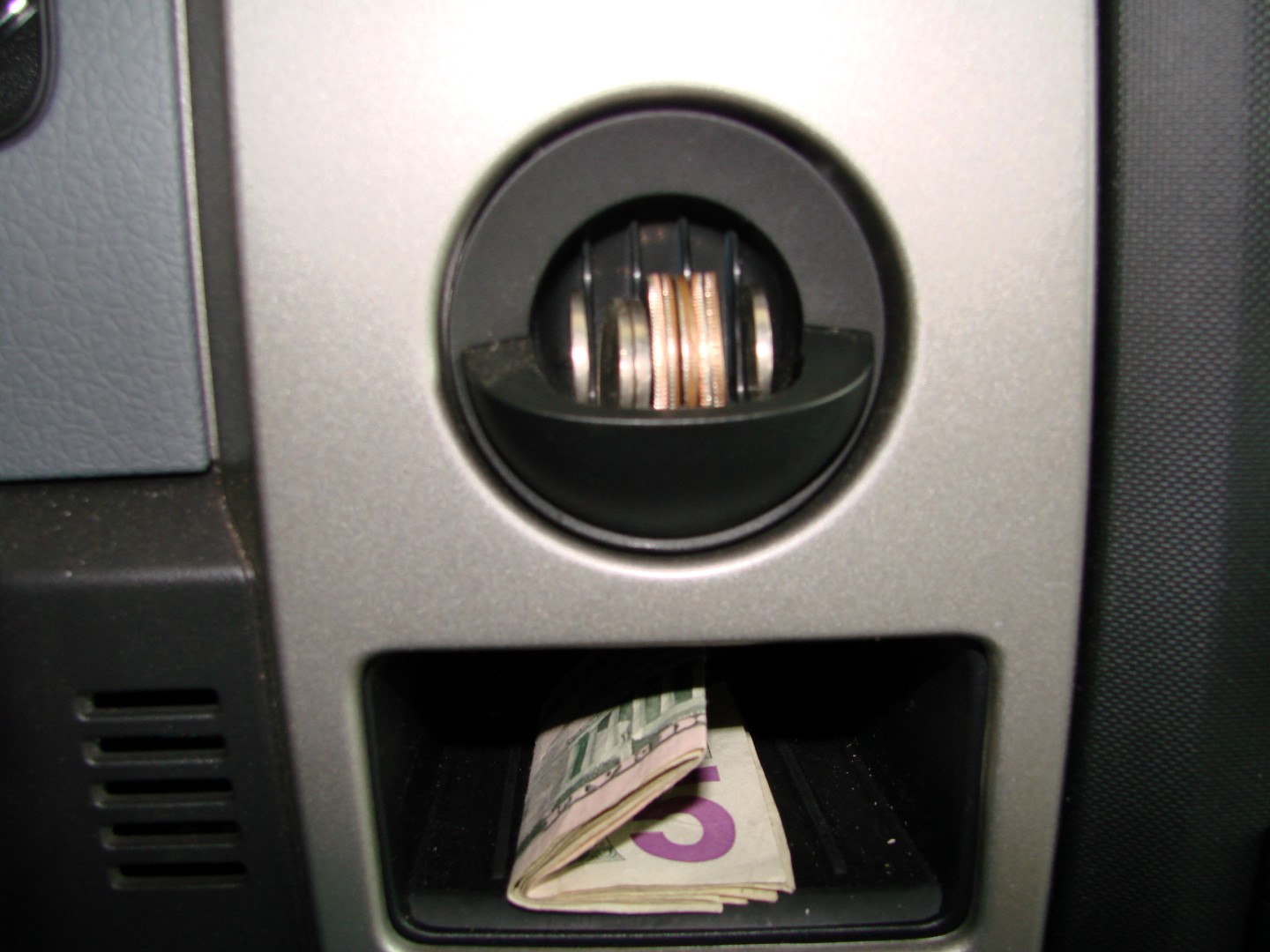 I hang my cb mic just above it so it hangs down over it and I don't have to look at it on my '05 F150. Useless frammitz for those of us lucky enough not to have toll roads or many parking meters to feed. What do those poor 4x4 owners do for change storage? Pockets? How passe.