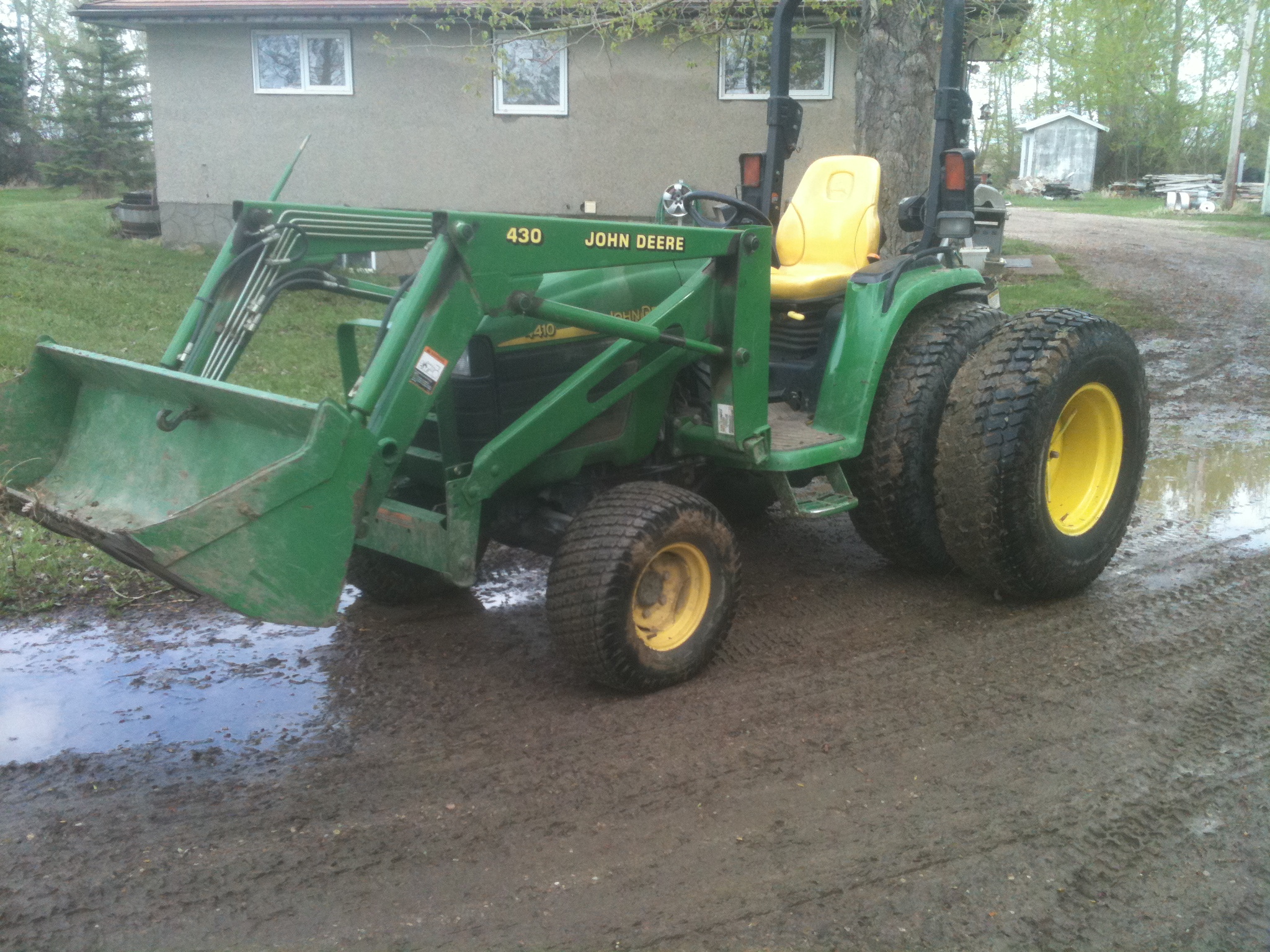 Another pic of the duals. Also for those who are interested the 27x15x8.50 front tires were exchanged for a pair of 26x12x12. I bought a pair of rims for a John Deere front mount mower I believe. I widened them 1" and mounted the tires. Works good for flotation.