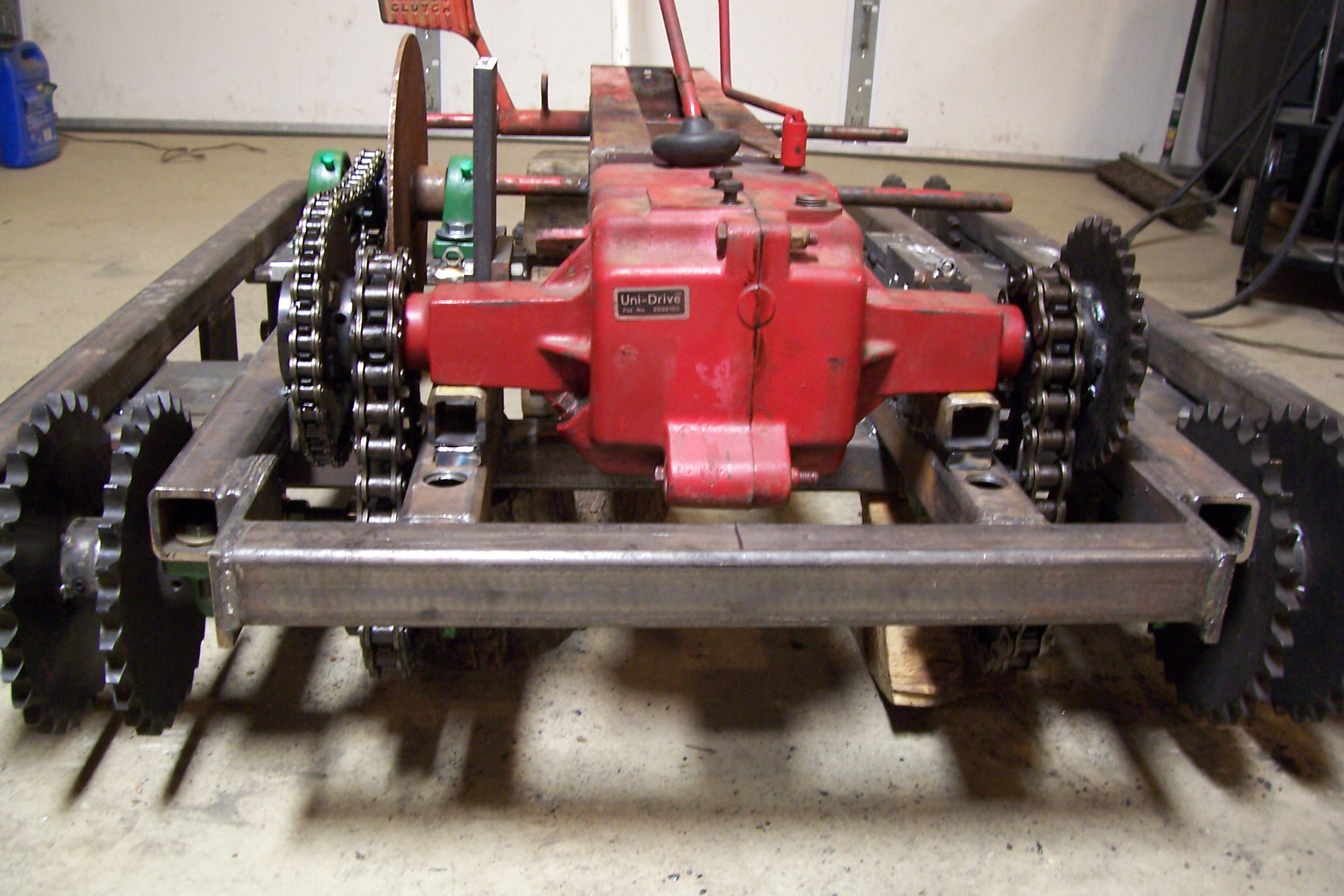 I bought plans from ubuilditplans.com for their newest plan to convert an ordinary wheelhorse tractor into a crawler tractor. I have been collecting the metal and mechanical parts over the last few months and am now finally making some headway with the build. I have one track assembly tacked together and got the undercarriage assembly all cut and tacked together. I am very pleased with the plans as they are very well written and very easy to understand. I would recommend u build it plans to anyone. The plans call for a dozer blade run by an electric winch, but I am being very ambitious with this project and I want to build a front loader for it later on. I plan on using a 15hp Farymann diesel engine I acquired to power it. Its very heavy and is much wider and longer than the stock Kohler was. I am following the plans as close as possible but I made a few changes. The plans call for the use of 3/16' square tubing, I went with 1/4". I also added an additional third idler sprocket to the undercarriage as the plans call for two per side. It uses the stock 8speed wheelhorse transmission and the crawler steers with two 10" brake disks that are chain driven on independent mounts chain driven to the transmission. I'll post more pics as work progresses. It will probably take the rest of the winter to complete. It is a very fun and interesting project.