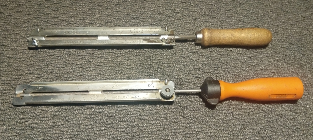 As to how far to take them down, it seems to me nearly every chain I have ever owned has a scribe mark across the top of each tooth, that I've always assumed was the "end of life" indicator. Your chain, just guessing from the photo, must be right at that mark on most teeth if not beyond it on a few.