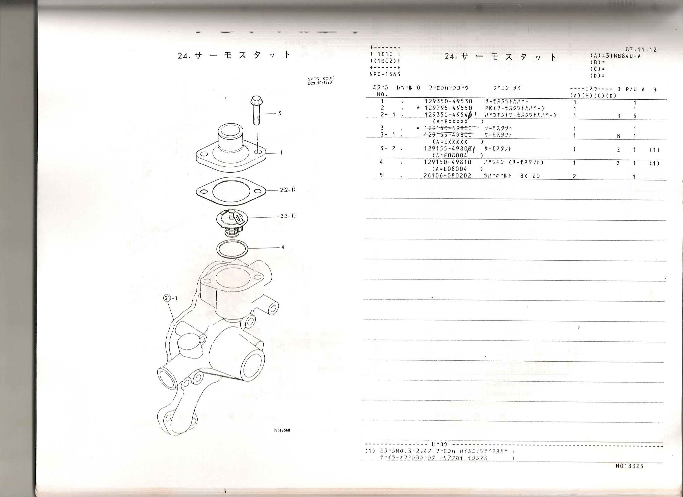 Sounds like the thermostat is opening. Parts drawing for it shown. Reference 3/3-1.