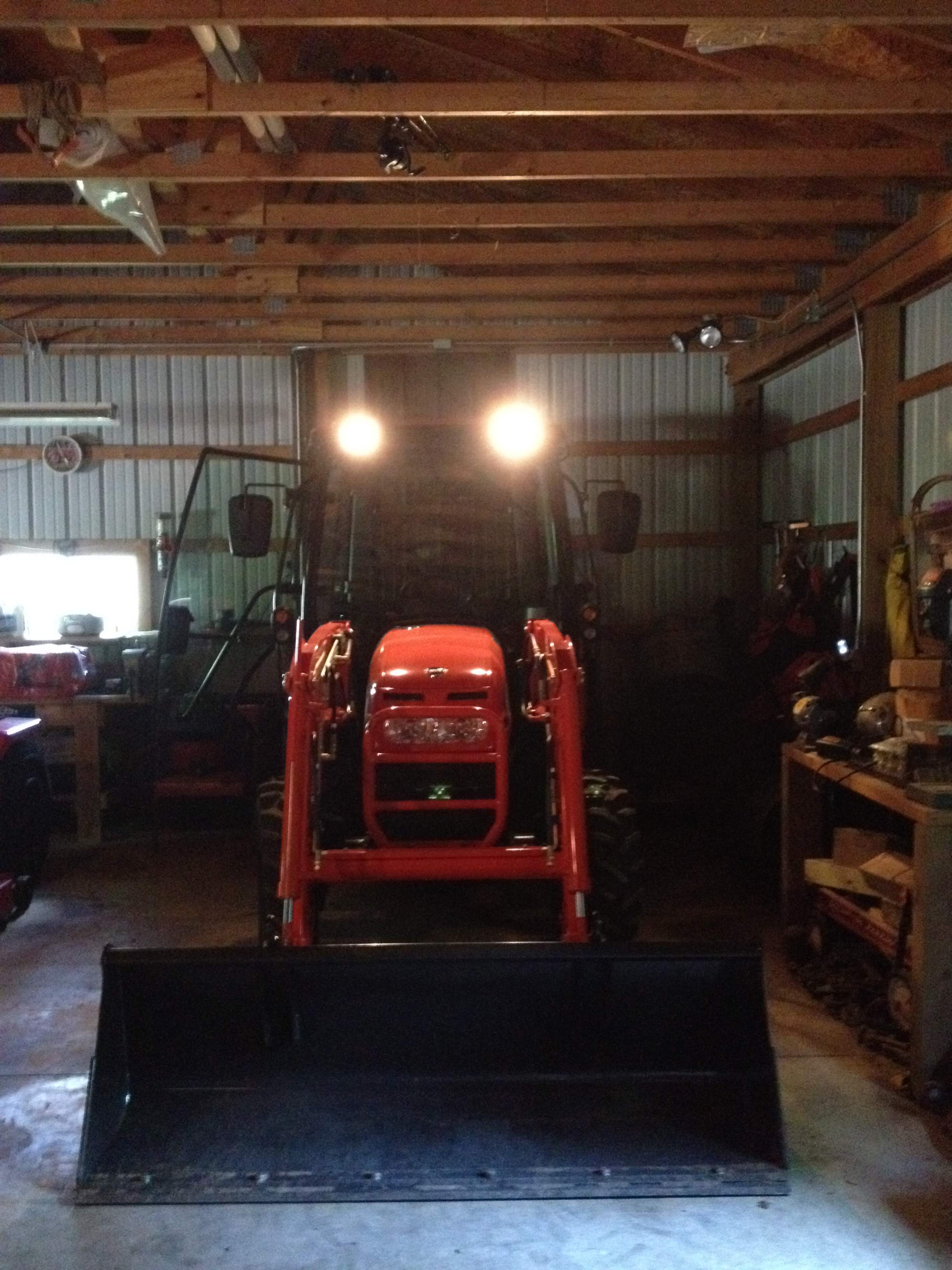 One side of our small barn has just enough room to fit the tractor and my riding mower behind it. We have no animals other than our dogs so the 2 stalls end up being my smaller tool storage.