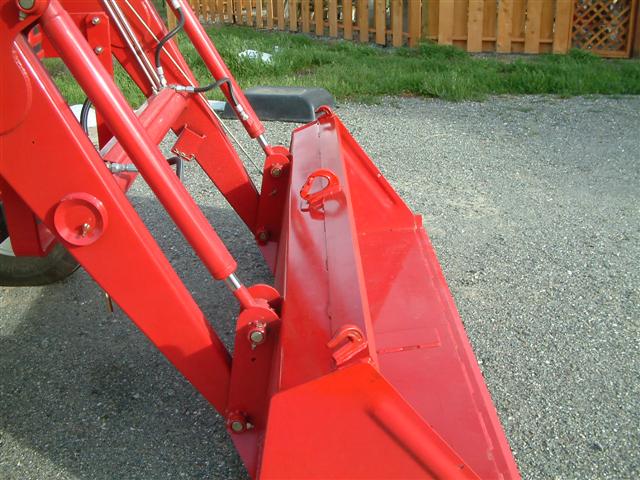 Hooks mounted outside the lift arms are simply asking for trouble. As I've said many times, I've cut off and re-located dozens of hooks in my shop. Every time the owner had a ruined loader because he had twisted it by using incorrectly mounted hooks on the outer edges of his bucket. Besides the pure physics and avoidable torque applied incorrectly for which an FEL is designed, it is also an accident waiting to happen. It's your tractor, your money and your life, but I'd cut those outboard hooks off and mount them properly in line with the loader arms as soon as possible.