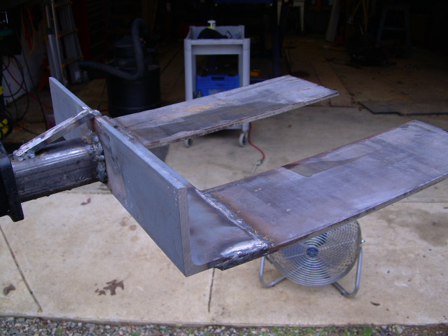 That looks cool... but I can't quite figure out what you did. It looks like you built some kind of platform for a single pallet fork and then drilled a hole in the fork and installed a ball?