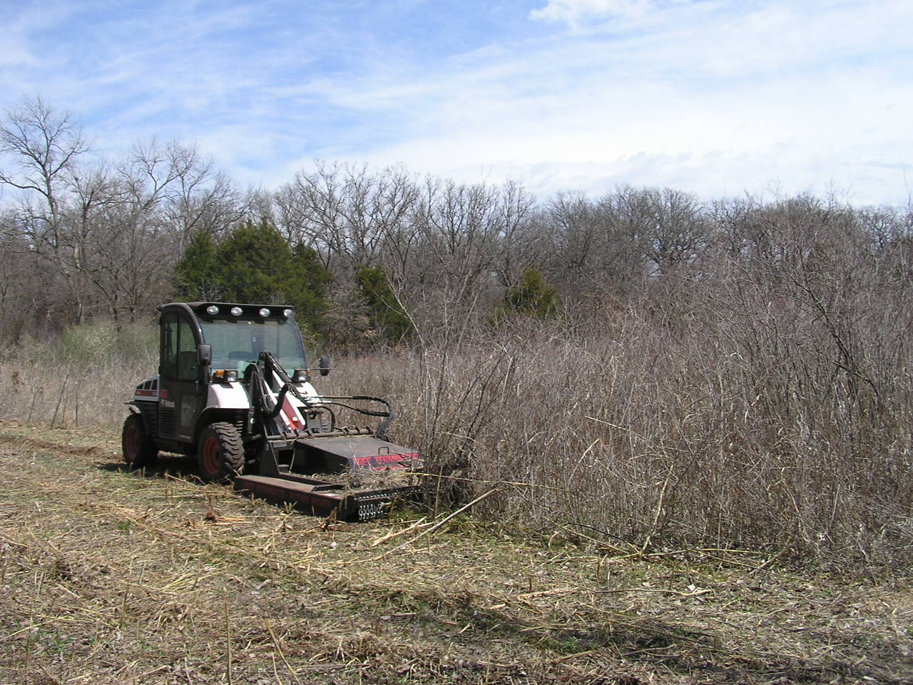 Imagine trying to mow with a deck out in front of you large enough to handle a single 4 or 5 ft blade. Seems like a potentially troublesome task.......The mower would be 5.5 ft deep (front to back)at a minimum.......
