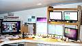 2manyrocks: When do circuit board layout, I use the big landscape monitor for the board. The other monitors have circuit schematics and datasheets for parts. Back when I used to use a light table, I'd have tables on each side with various books open to the pages with the data sheets for the part numbers in the design.