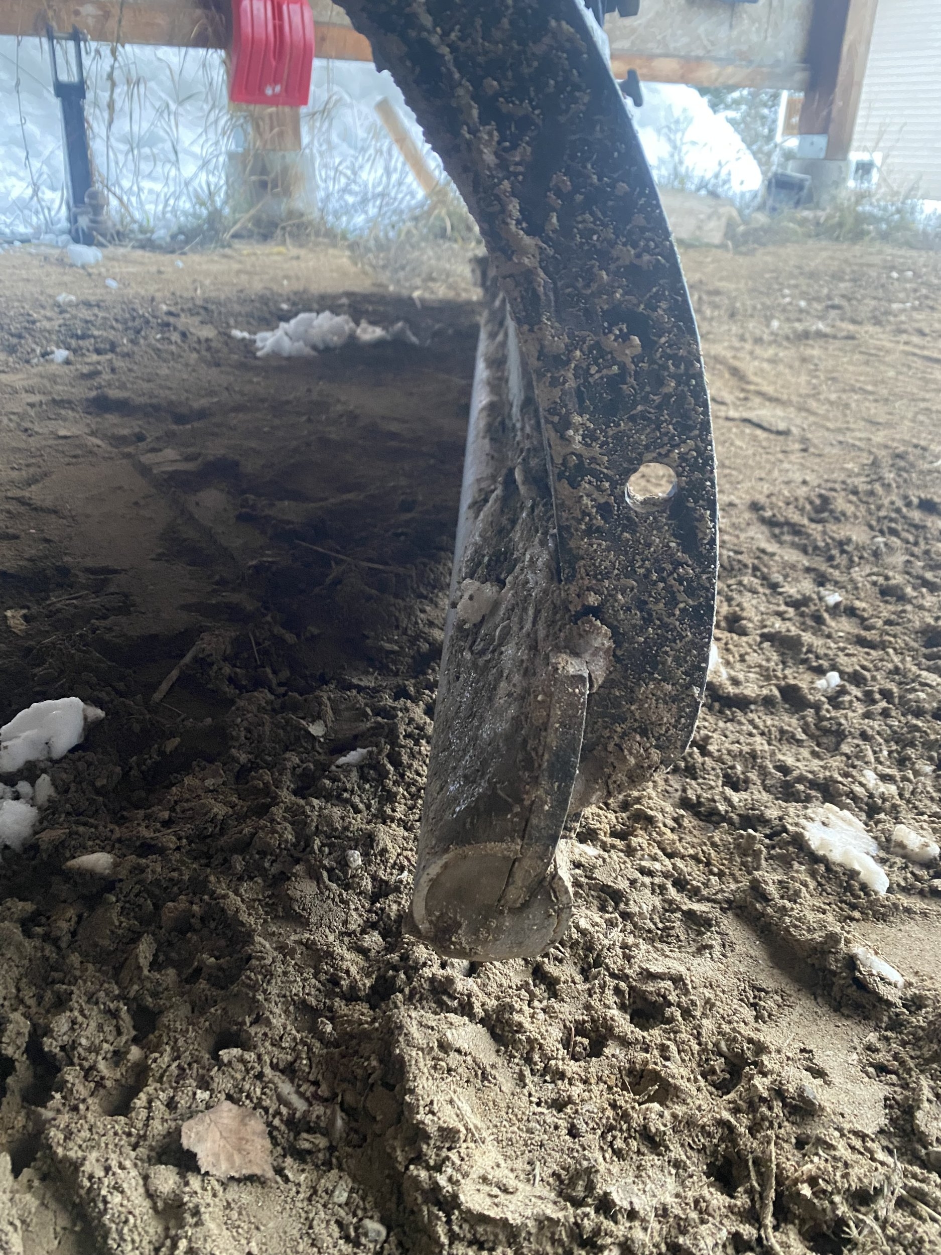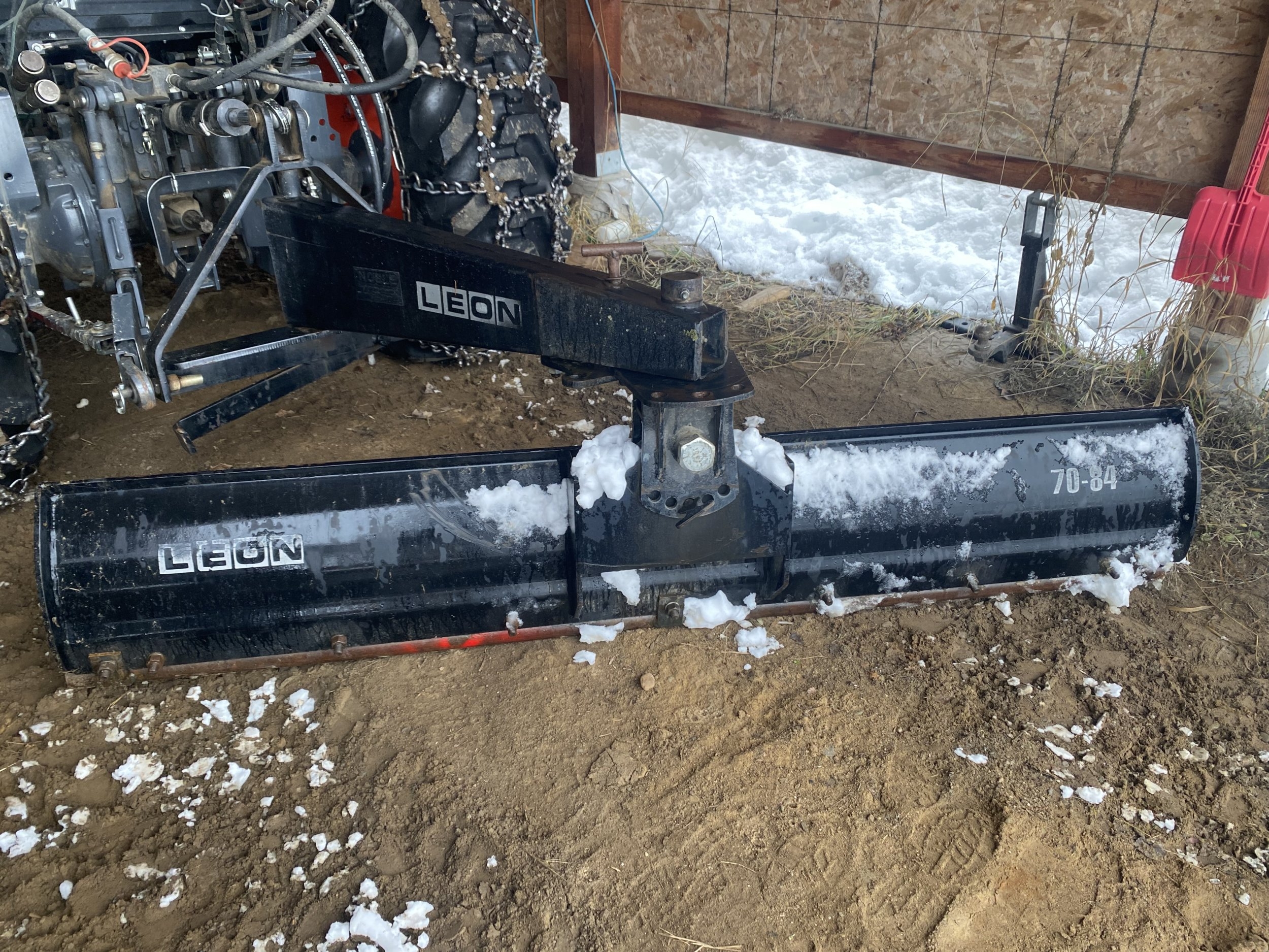 I decided to plow the driveway and the area around the buildings. I tried using the front plow but that would keep digging into the ground so I pulled the inverted snow blower off the back and installed the rear blade. Earlier this year I put a round pipe on the cutting edge of that blade, to see how it would perform. I can't believe the difference it makes. I just dropped the rear blade and ran with it. Almost zero gravel / dirt was dug up and it still cleared pretty much right down to the ground. Great improvement. Next year I will make something similar for the front plow. FYI, the temps are just around freezing, so the snow is very heavy and wet. Unfrozen ground and heavy wet snow are not a good combination, lol.