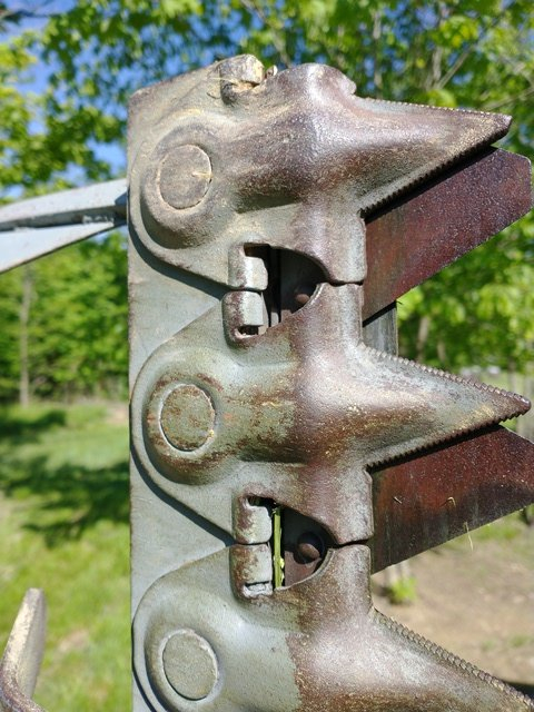 Like many other members, I am faced with a soft pond edge and some steep banks. I have tried the brush mower and the hand held weed cutter resulting in a severe case of pucker factor and exhaustion, respectively. I happened upon an ad for the custom "franken-sickle" in the first photo. I was prepared to swallow the modest price if it fell apart, but with some TLC and new wiring for the winch lift, I have it working pretty well running behind a Ford 1520. My only complaint is that the 5 ft bar length doesn't allow me to reach up the bank or far enough over the pond to trim all the offending growth. Not yet defeated, I am considering the possibility of replacing the bar with a longer one. I have not been able to find any info on the existing bar (second photo detail). Does anyone recognize the maker and do you think it is a sound plan? Thanks for your help
