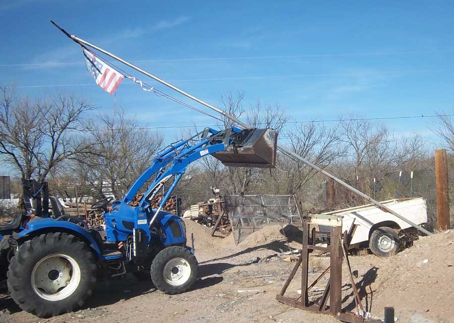 Kioti ck27. 2x10" hard maple planks bolted to the bucket as forks. Lol.