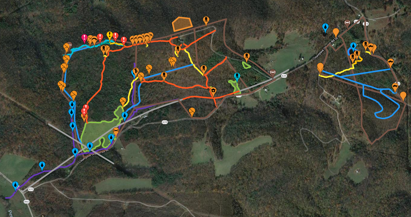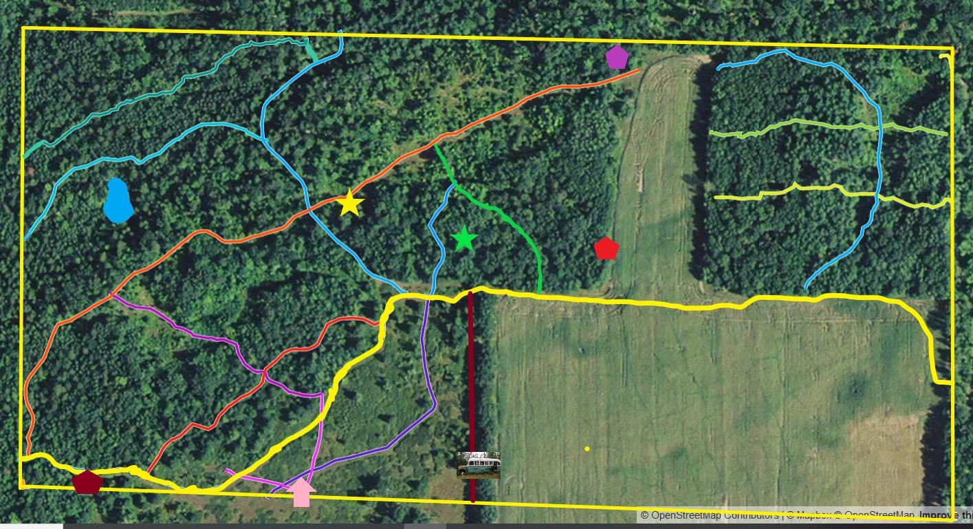Nice work! You had better luck with the mapping function of Hunt Stand than I did. Things jumped around wildly. Maybe it was becauxe I was using the free version. Gaia GPS worked much better for me. What was your secret? How are you making your new trails - removinb stumps or cutting them flush?On 200 acres, we have built trails and are adding more. In the map, Orange are established trails, Blue are trails planned, yellow are trails that are being built - where bright yellow represent walking trails and dull mustard yellow are started trails.