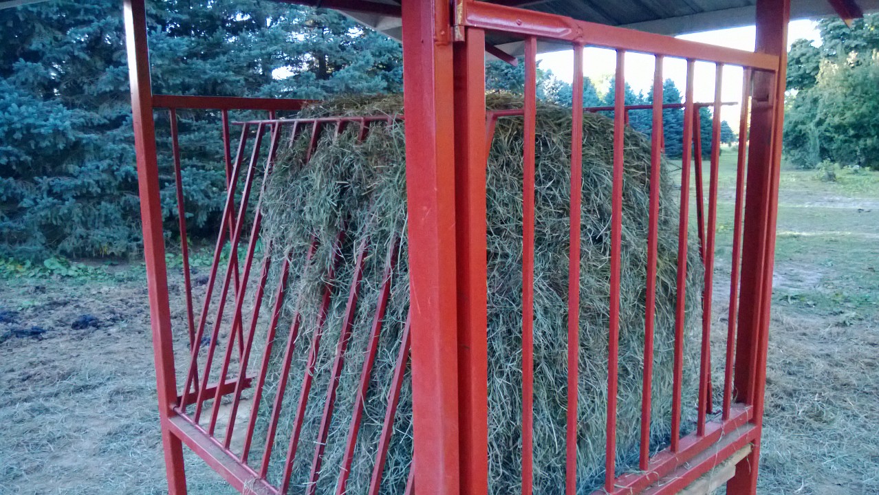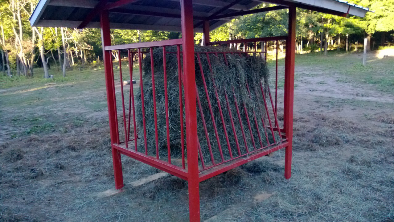 Wow... nice feeder. Any pix of it with a round bale in it? Great for horses... off the ground and covered. How meny horses do you feed with it? Looks like the sides fold down as the hay gets eaten, so they can get to all of it? We do our own squre bales, and with only 1 horse and 3 ponies its not too hard to keep up with. If we had more, and fed in the field I would steal your design in a heartbeat!