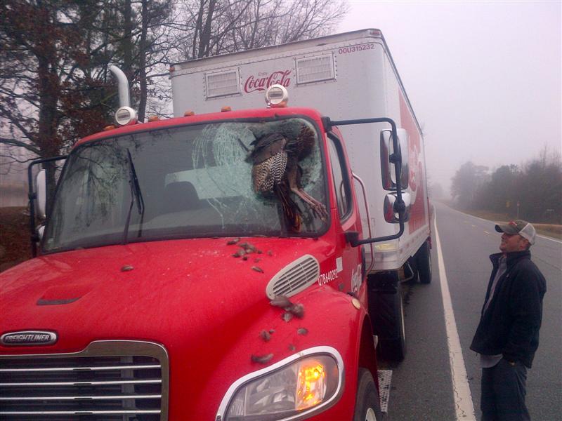 As I was going to Seymour this morning and saw this Coke truck sitting on the side of the road. When I got close to it I could see what was wrong and turned around to go make sure the driver was OK; he was fine. I told him he should get a medal for keeping the truck in the road and not having a major accident. You will see why in one of the pictures.
