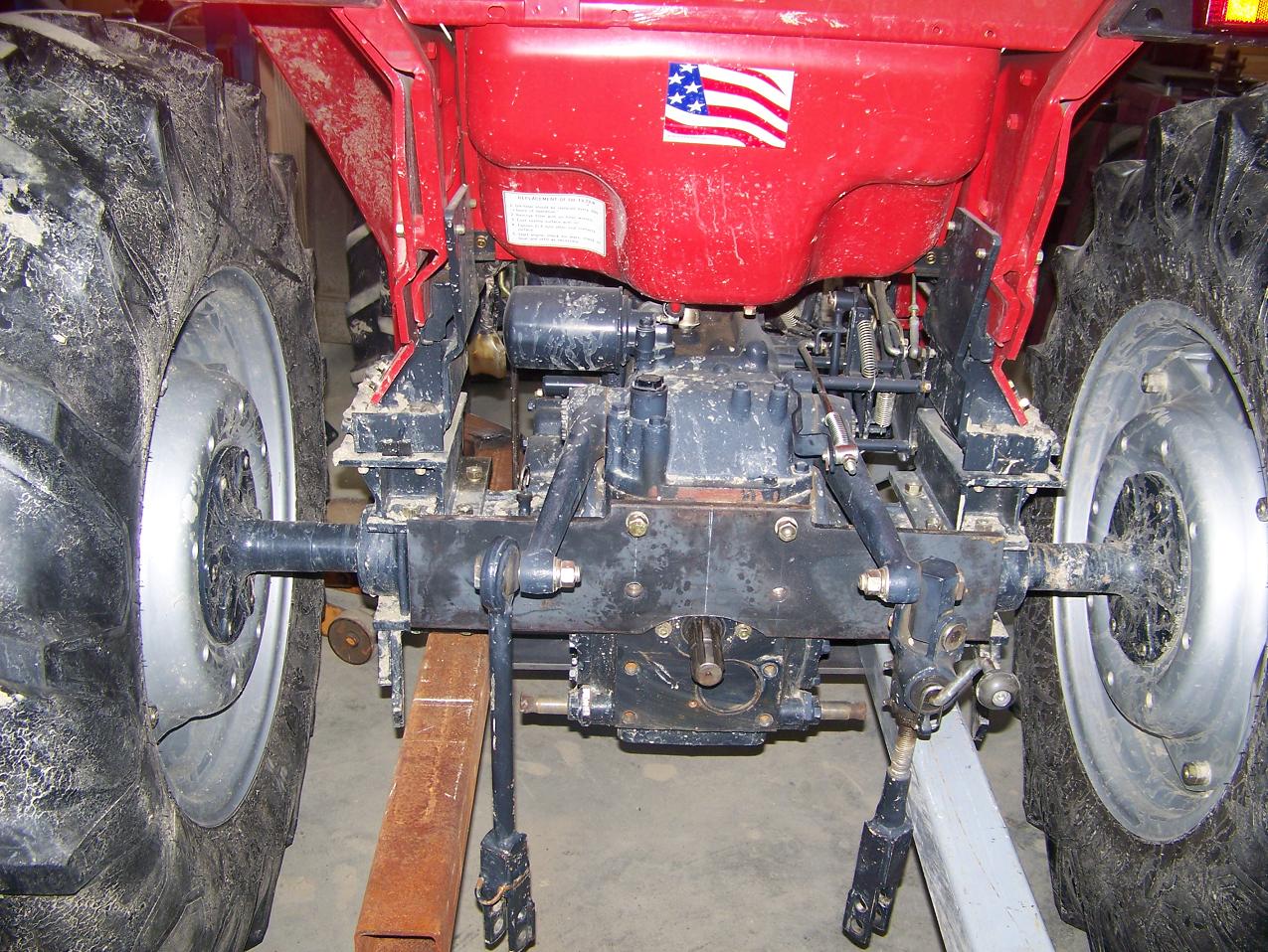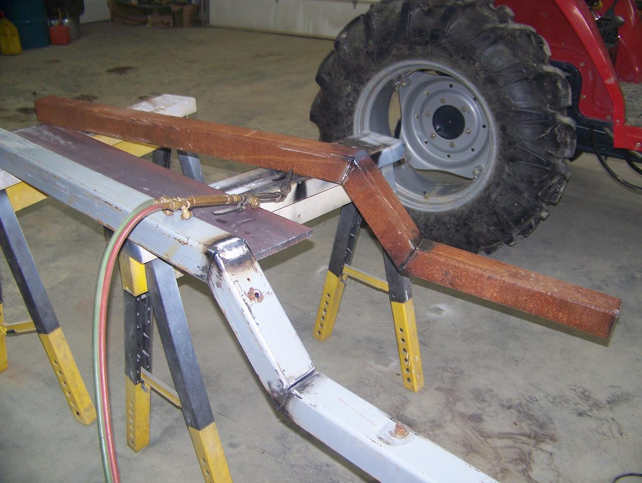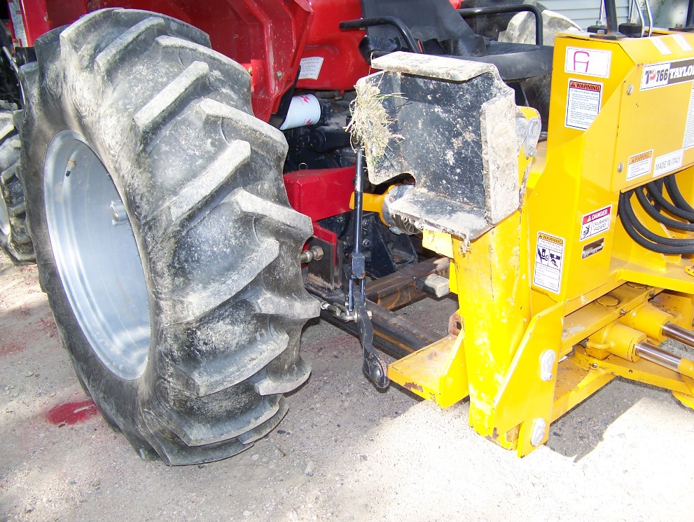 (Pic 1) bolts removed and measured. The holes are .700" The bolts were .610 because there was no shoulder. Only one bolt looked like it was crushed and the holes were not elongated. (Pic 2 )Next was to setup the mag drill, that was a pain because once you turn on the base it dosen't move. So I made a template to clamp to the steel and this gave me the position to be centered on the exsiting hole. Drilling was a piece of cake. (Pic 3) Drill hole, insert and tighted the new shouldered .750 bolts and repete. Project time about 1 Hr (Pic 4) I cut off the xtra bolt past the nut. My fel hoses are in this space on the right side. (Pic 5) the second reason that I don't like the front brace when turning the tires rub. This is no longer a problem because the preveous owner just chewed the tire instead of adjusting the turn stops . The setup is all tight and seems to be okay. I will continue to post the process of the sub frame to the back of the tractor.