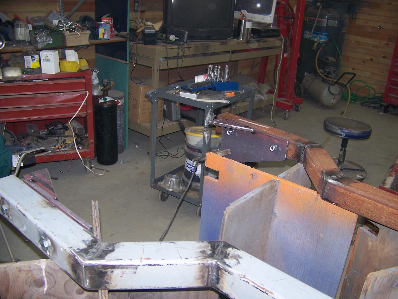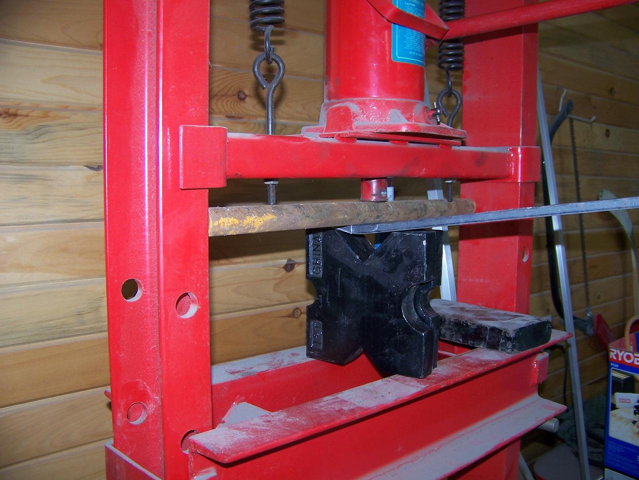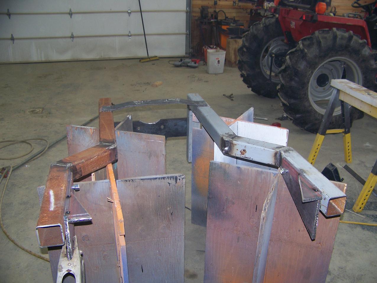 (Pic 1) bolts removed and measured. The holes are .700" The bolts were .610 because there was no shoulder. Only one bolt looked like it was crushed and the holes were not elongated. (Pic 2 )Next was to setup the mag drill, that was a pain because once you turn on the base it dosen't move. So I made a template to clamp to the steel and this gave me the position to be centered on the exsiting hole. Drilling was a piece of cake. (Pic 3) Drill hole, insert and tighted the new shouldered .750 bolts and repete. Project time about 1 Hr (Pic 4) I cut off the xtra bolt past the nut. My fel hoses are in this space on the right side. (Pic 5) the second reason that I don't like the front brace when turning the tires rub. This is no longer a problem because the preveous owner just chewed the tire instead of adjusting the turn stops . The setup is all tight and seems to be okay. I will continue to post the process of the sub frame to the back of the tractor.