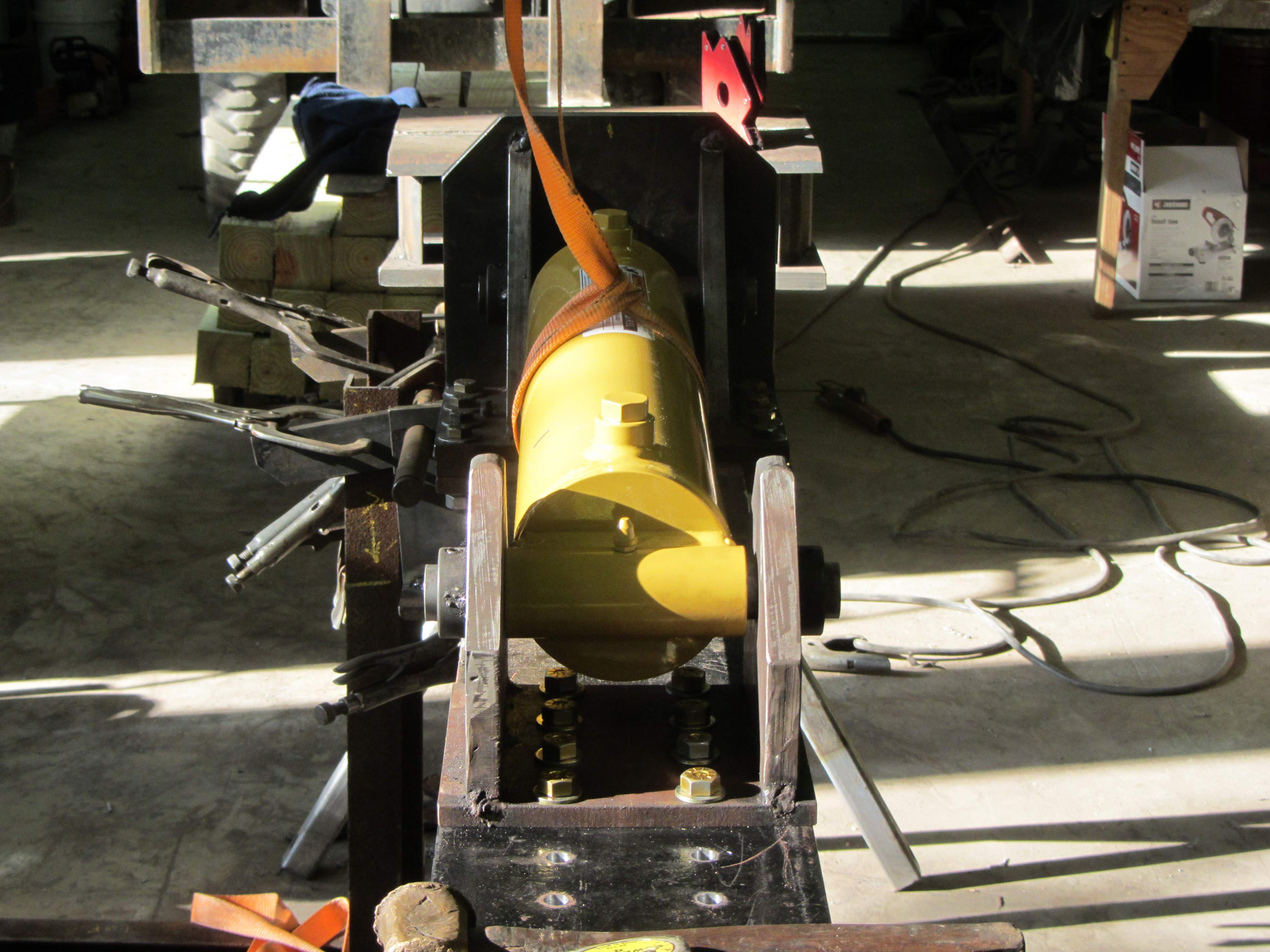 Todays work was welding the base plate used 2 # of 5/32 MG 500 rod. Nice rod once I got up to 145A and stopped making voids. This was the 60d bevel on one side. I won't do that again. I clamped it down pretty good but one side warped up a bit. I think I can work around it.