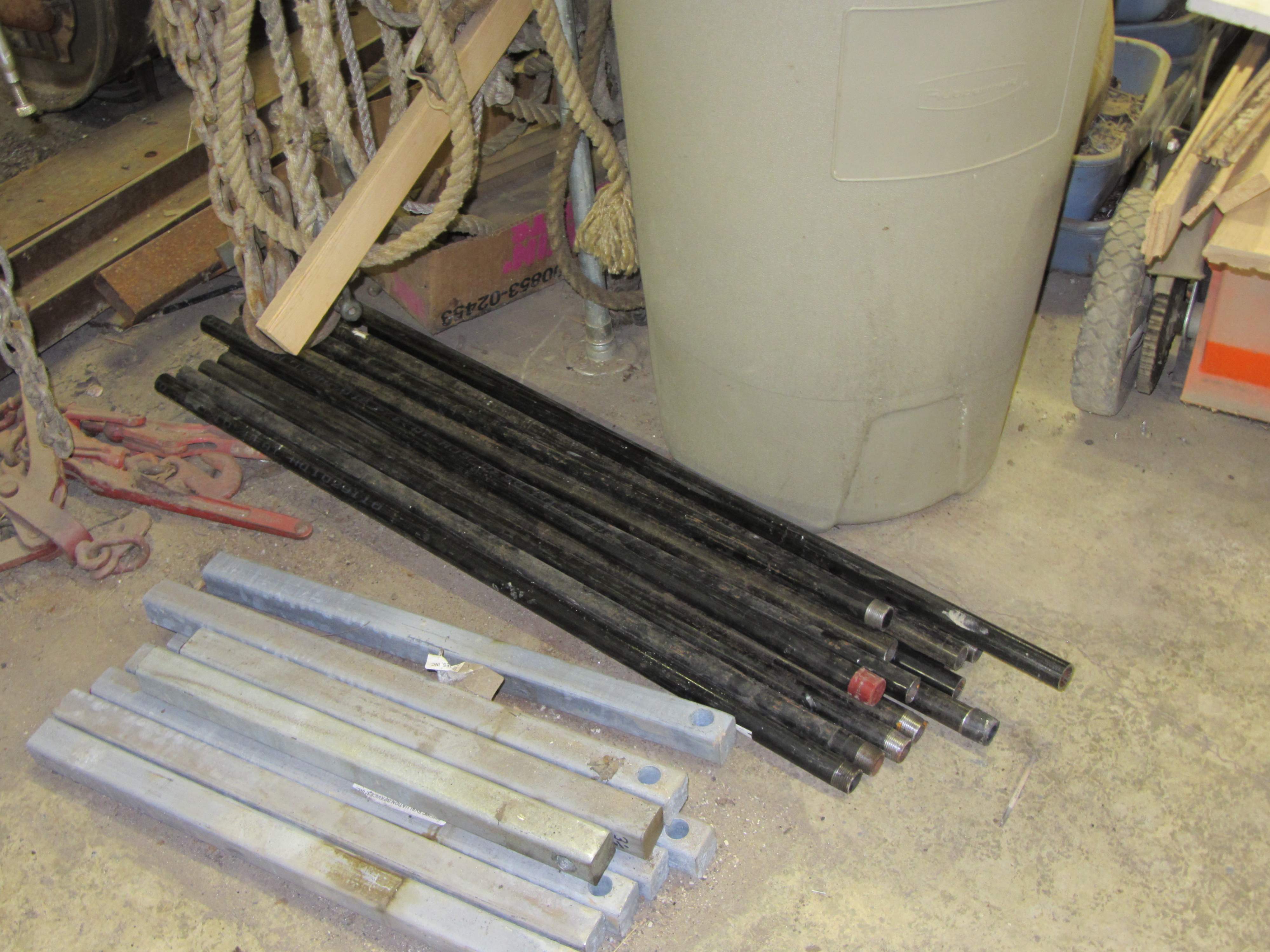 Lot of give in the cylinder anchor with 80psi on the 3.5 " diam cylinder . Used up an inch of travel before the lifter started to move. Of coarse it is clamped mostly. I still want to bolt it in and it is pretty impossible to drill any more holes in the beam now. Well not impossible but ugly. I could weld clips to the beam and bolt to them. I sort of have that started but I don't like it. I need a rest. Tomorrow is an all day volunteer job. Handrail posts on an Appalacian trail boardwalk. last last picture