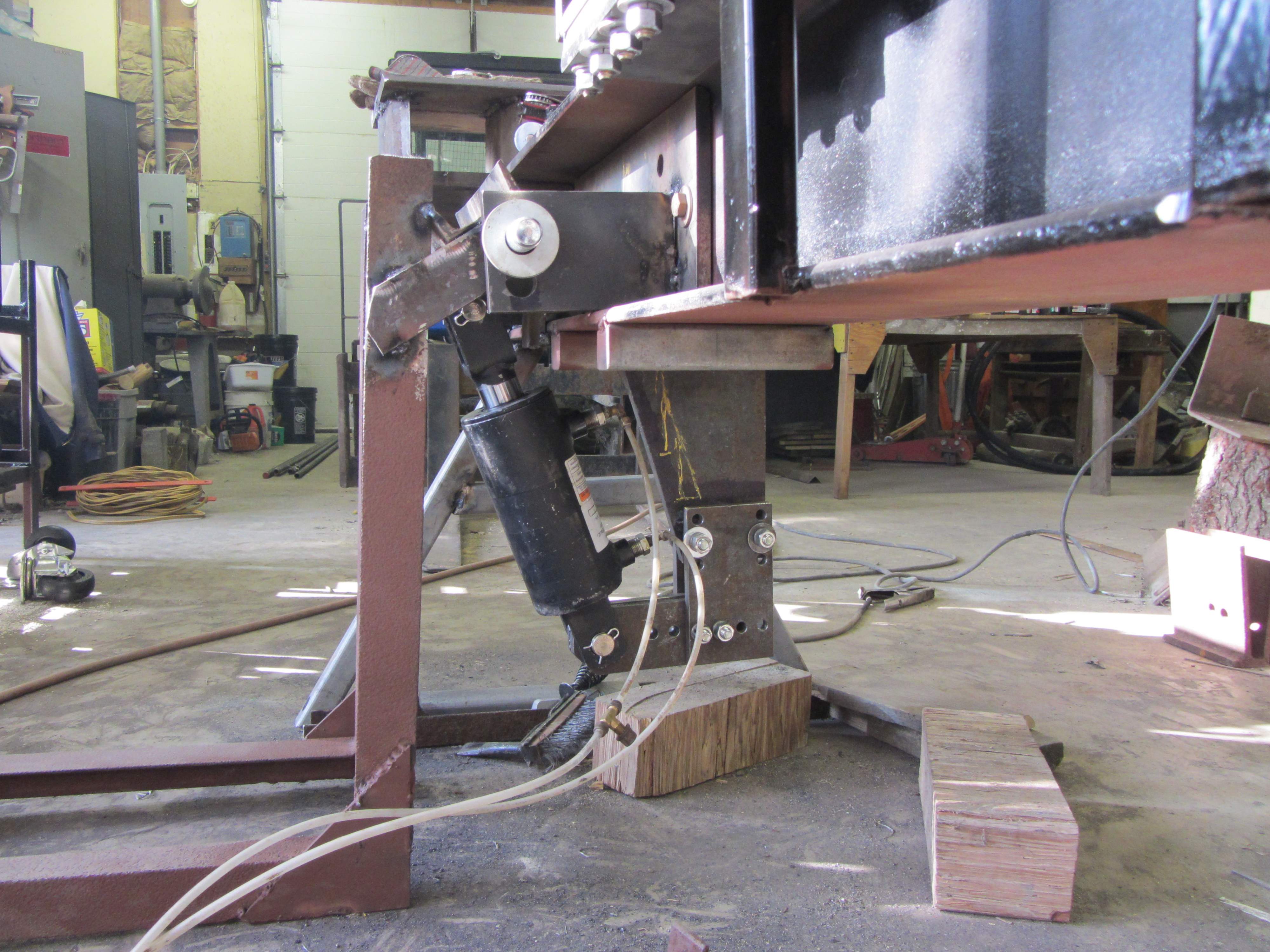 It's hard to see but the pivot attachment for the end of the cylinder on the lift frame is above the bottom of the main beam. It was difficult to figure out the most efficient location of the pivots with out a cad program. With that pivot where it is , there is a limit as to how horizontal the cylinder can be. I can move the base back a little but that's all. With out taking it all apart and making major changes. I don't want to do that. I was very concerned about the 4" stroke and running out of stroke. The cylinder is 3.5 diameter. Plenty of force .