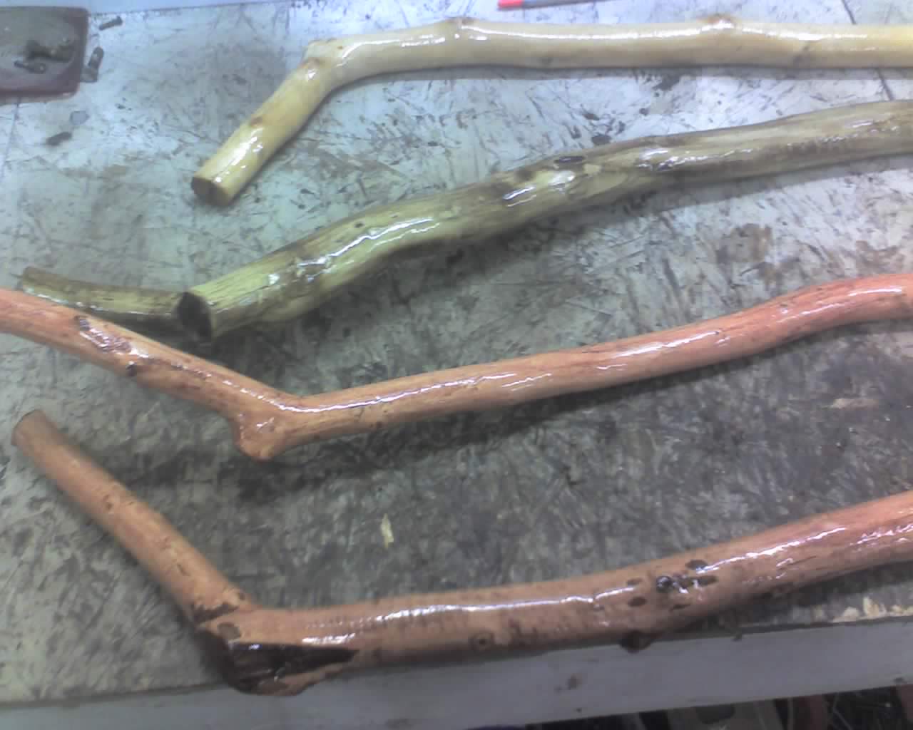 I take branches from trees and make canes and walking sticks out of them. It is very enjoyable and relaxing.