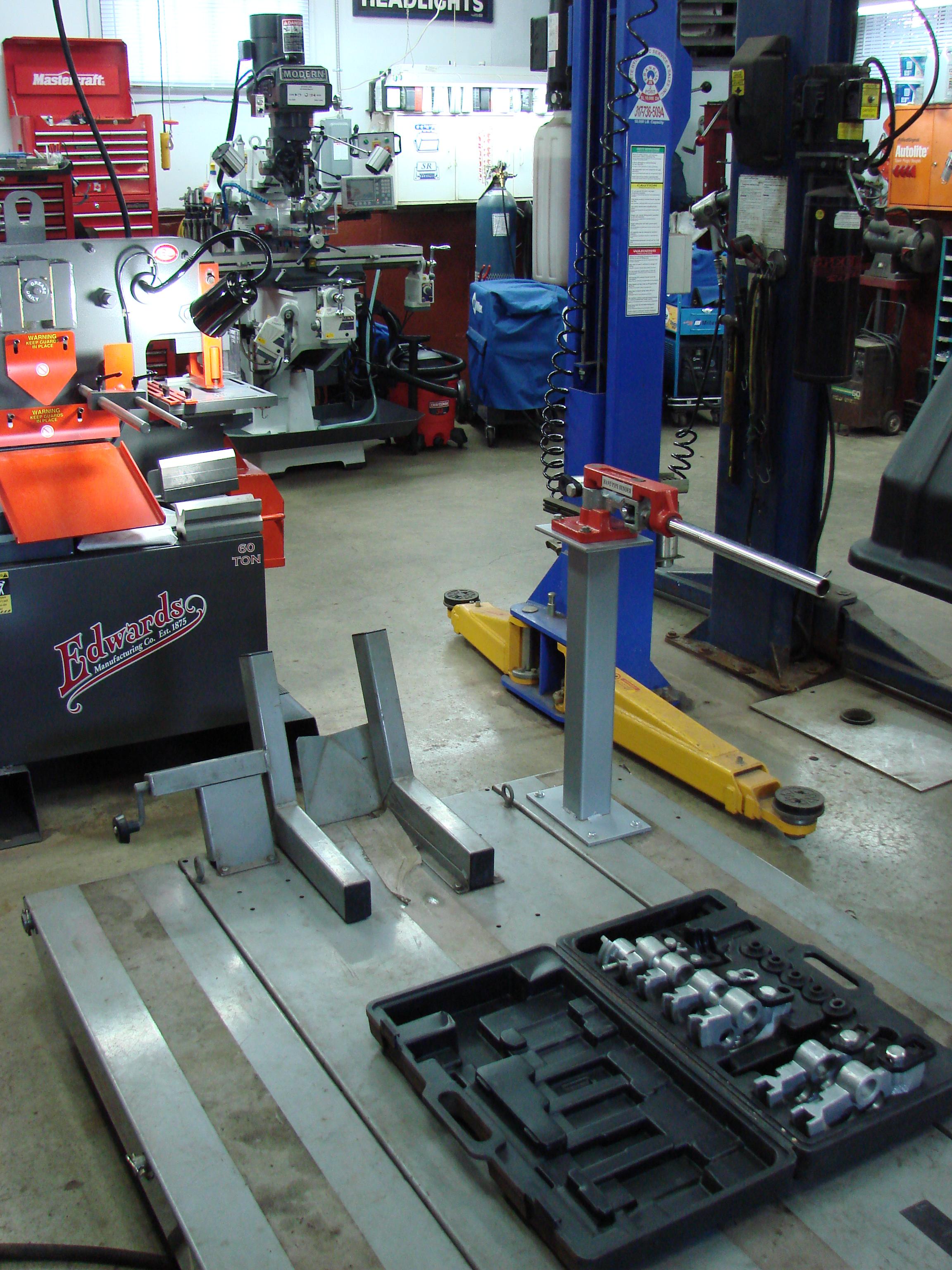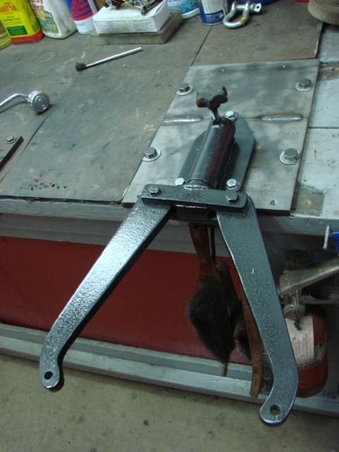 By doing that I had the vise in an area where I could hardly use it ( see first photo). I still needed the manual Ironworker but it was really in the spot where the bench vise should be. To make matters worst. About 12 years ago I had built a fixture that would hold transmission, small engines or just anything that even needed to be welded but couldn't use it lately because of the new location of the work bench.