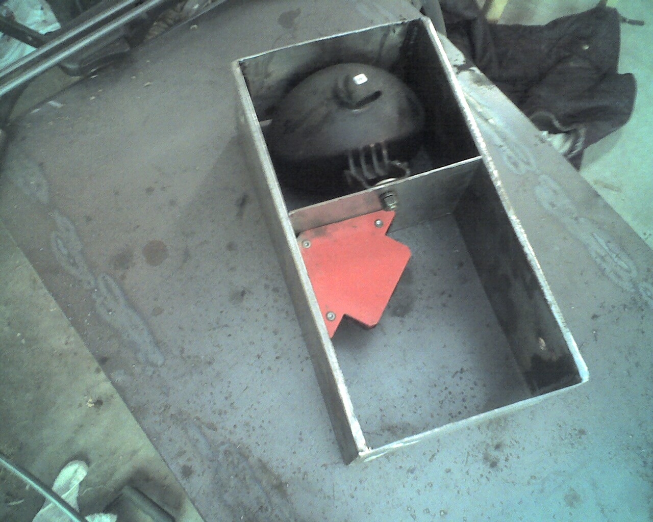 This picture shows the final product. Along with the fire extinguisher & 18" of pvc pipe with drain cemented in the bottom that I mounted to the SMV triangle mounting bracket. I moved the SMV triangle behind the seat. The pvc pipe holds my 5/16 20' chain perfectly.