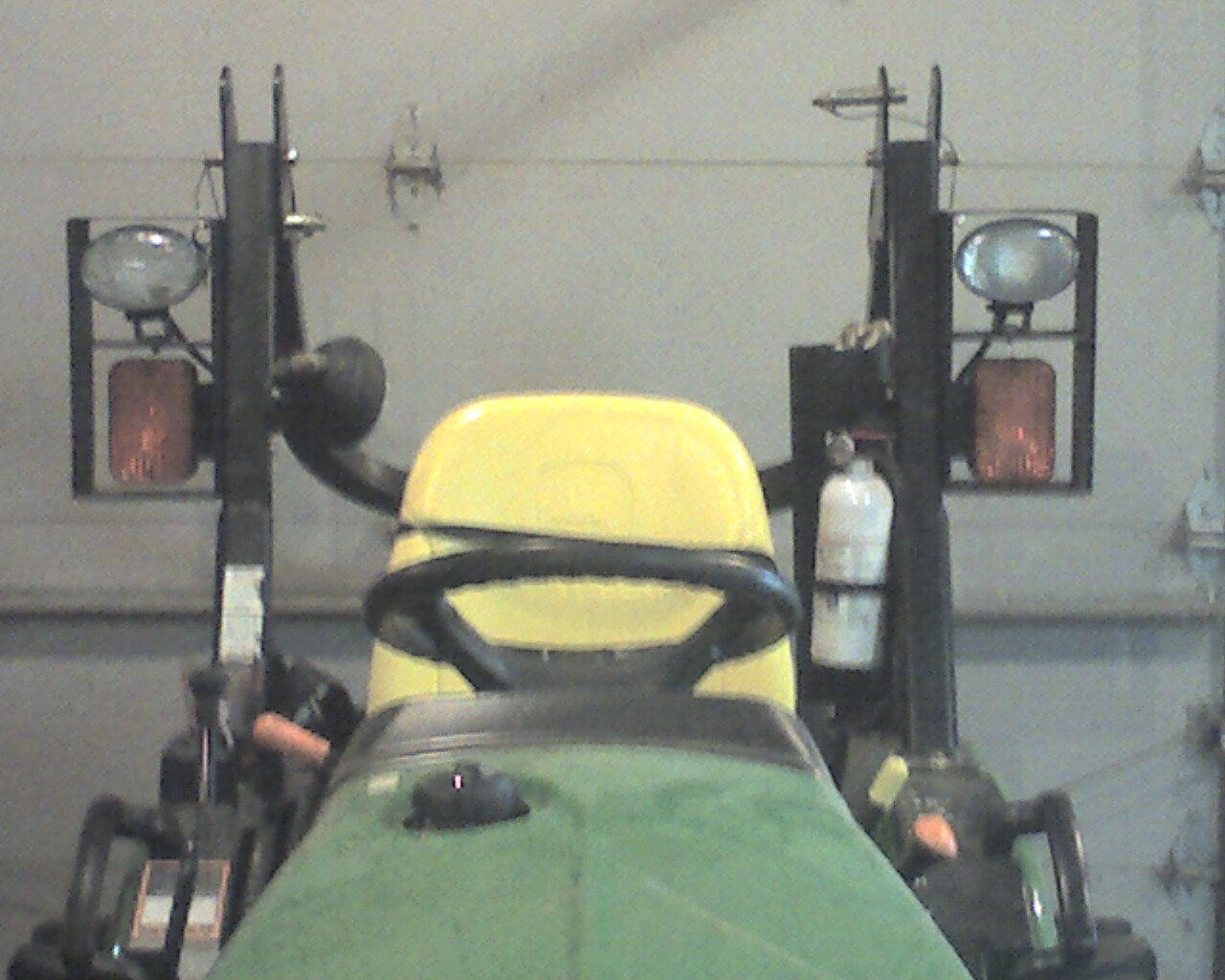 Solution: hit the junk pile, find heavier steel & start welding. I considered magnet-bases for the lights like some guys have, but I already paid for the JD work lights and needed better protection for my turn signals.