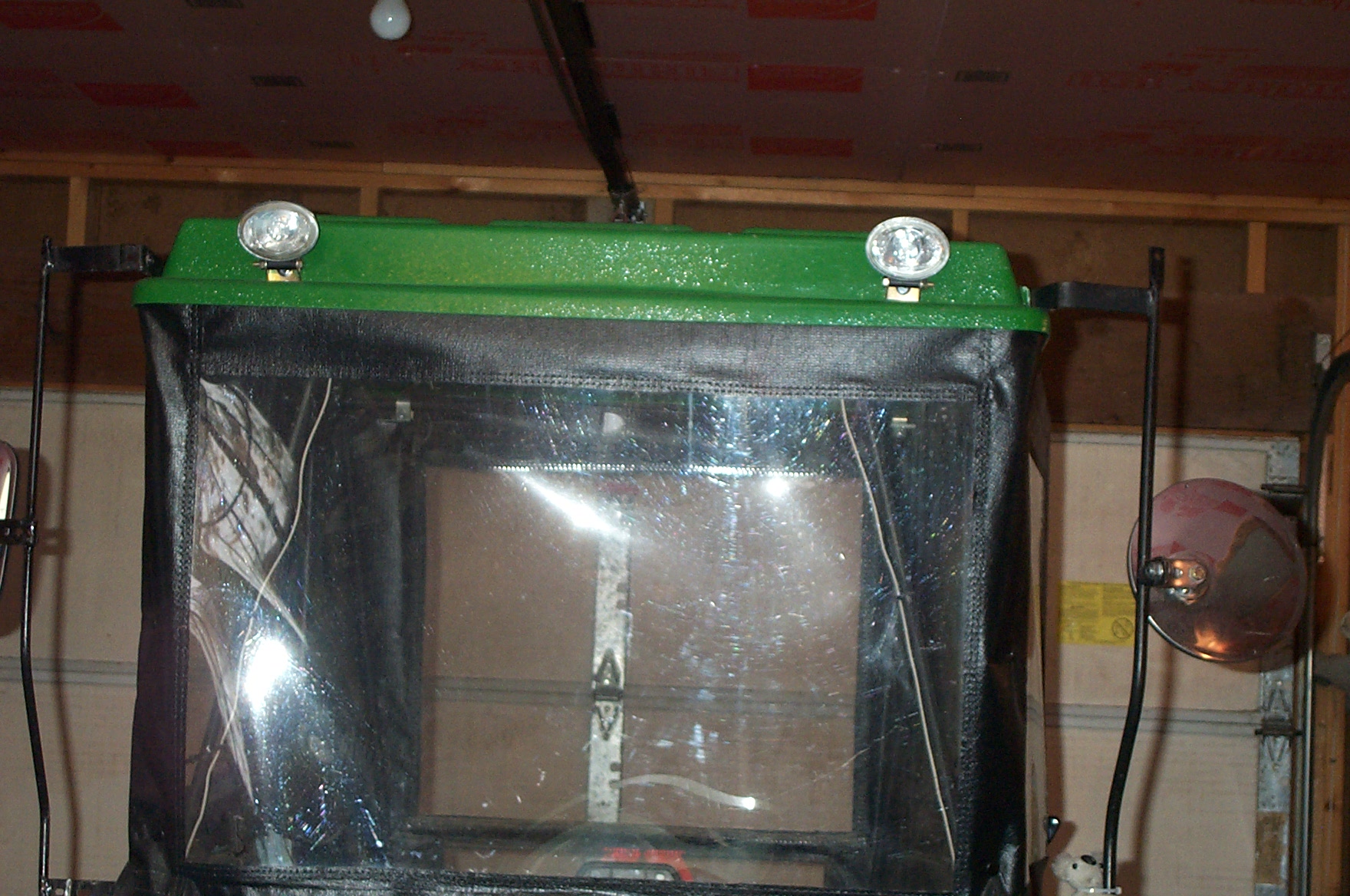 Here are some pics of my $20 lights (the wiring kit includes a separate switch) Mine are mounted on the canopy of my cab, but could be on the ROPS or anywhere. P.S. They are halogen DCP_0953.JPGDCP_0954.JPGDCP_0955.JPG