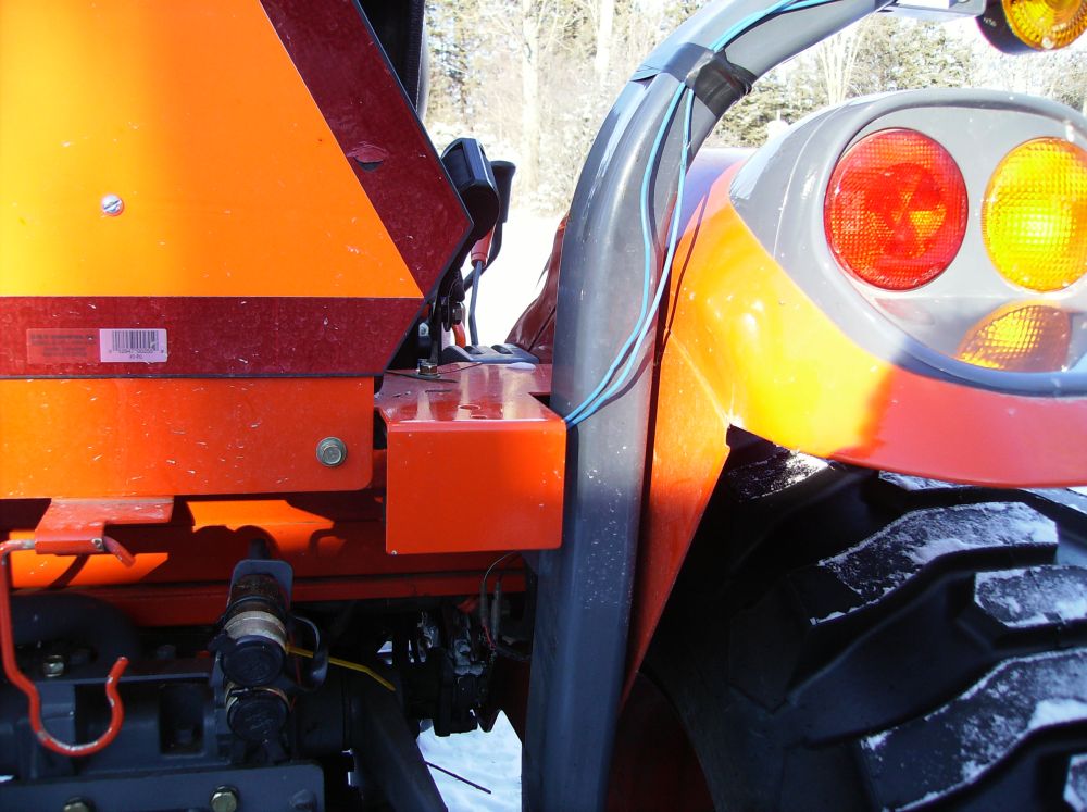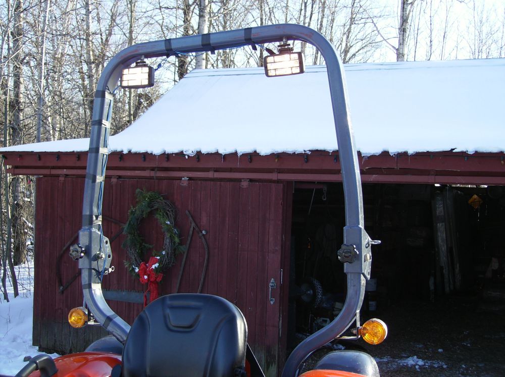8. The lights are inside the ROPS or I'd break them off on tree branches. Also, they are placed so they don't hit the backhoe controls when the ROPS is folded down with the BH on the tractor.