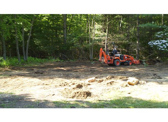 I figured I would do as much as possible with the BX and then rent a mini excavator to finish the job. I didn't get any before pictures but there was about 5 stumps of different sizes, lots of under growth, and being RI there was lots of rocks.