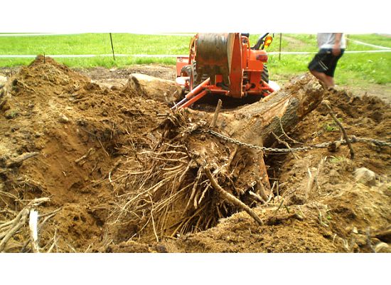 Had one oak stump that was hard to pull out and needed the come-a-long and the chainsaw to roll it out. I hit plenty of rocks that either added to the rock pile or were to big to get out but I was able to bury them deeper below grade. Surpising enough I was able to clear the 50x65 section with just the BX.