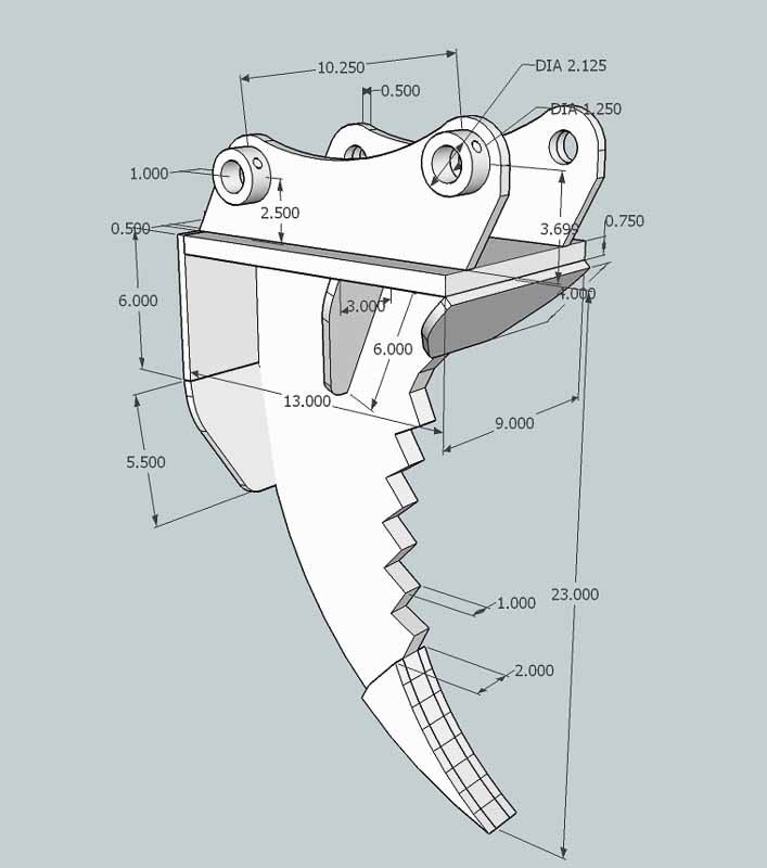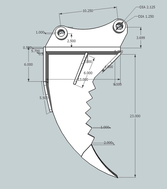 I am working on a government project at work. Ripper tooth for my new KB2485. Unfortunately I am 600+ miles away from my tractor. In hopes that one of you may have the info I am looking for.... I found this design in a search but I do not believe it was designed for the 2485. Can someone confirm or supply the bucket mounting dimensions?