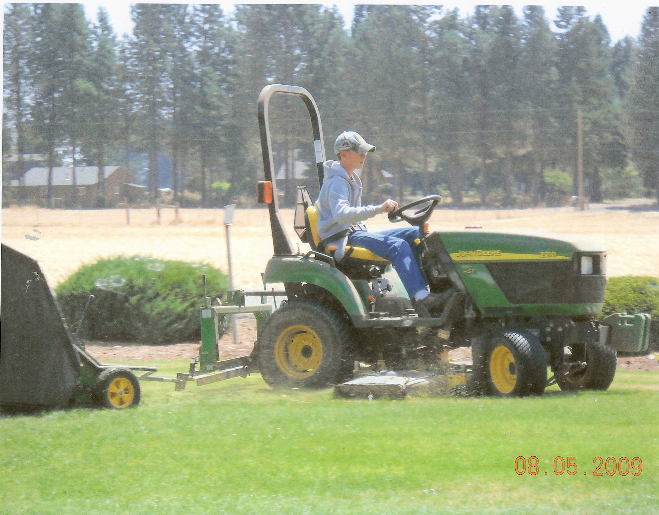 Here is me mowing my grandpa's lawn about 2 hours ago. I always wear my seat belt. My little cousin was the photographer.Oh, the imatch and the 2 weights on the front are mine.