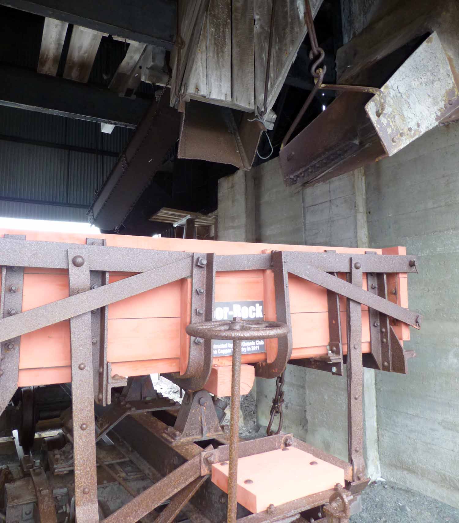 Those cars would have used to haul ore to the mill which was 15 miles away (abouts to the stamp mill) Here is a photo of the hoist I took the photo within. If you go to the Quincy site, you'll note this was the largest steam hoist built the world and lifted ore up a 7000ft shaft.