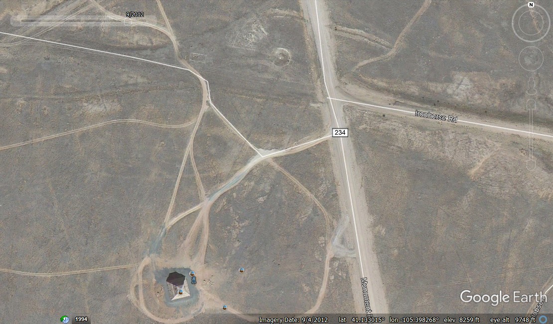 Here is Ames Brothers Monument in Wyoming. The old rails went right by it. Ames Wiki There was an old roundhouse just NE of the spot you can sort of make it out in this sat image.