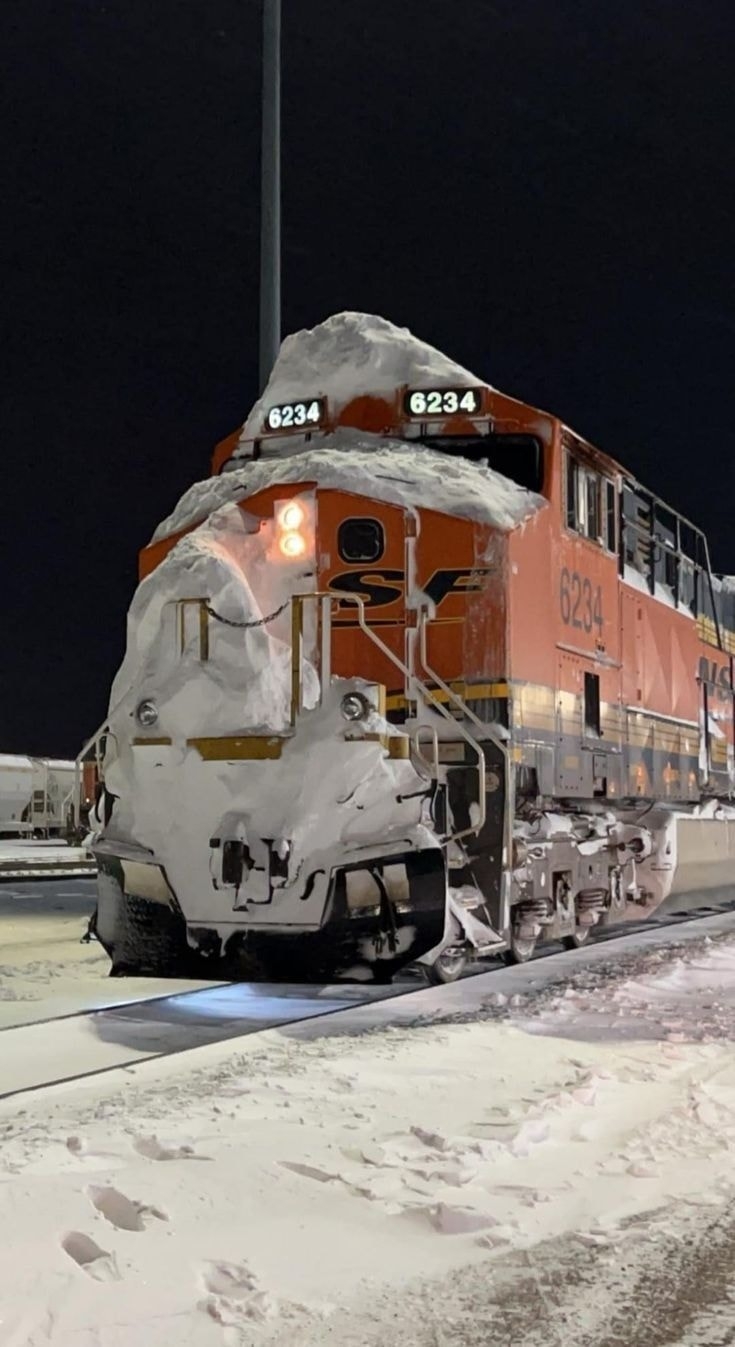 A little frost on the punkin'.BNSF Railway locomotive, specifically number 6234, covered in snow. October 14th. Location not given. View attachment 4266985
