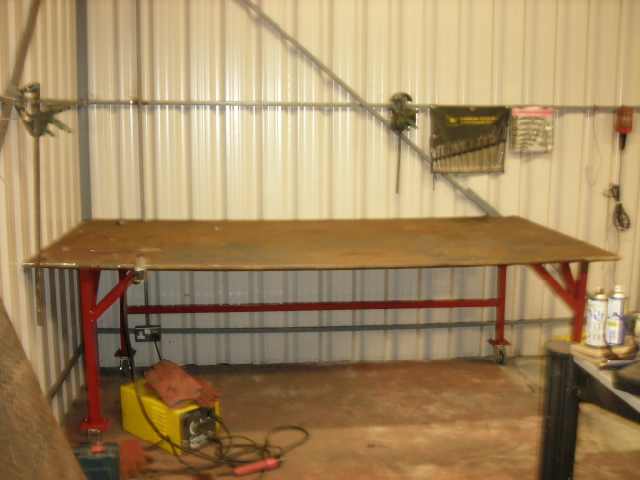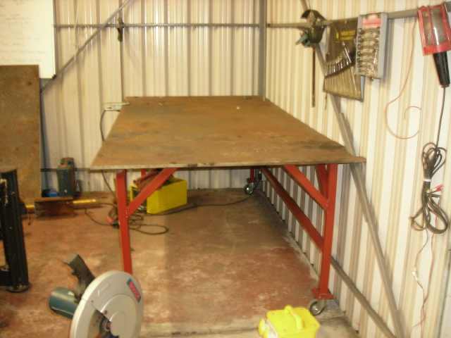 That looks good, but it ain't the heaviest. Mine is 4' X 10' with 1/2" top, 4" pipe legs and a band of 8" channel all the way around and across the center. I wish I had the casters on it like yours, I have to drag mine with the tractor if I want to move it any. Later, Nat