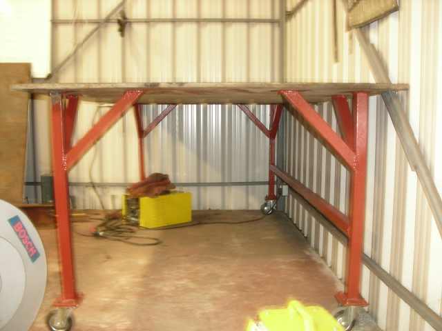 I cut out some corners so that the table would fit nicely into the corner of the shed. I also hope to bolt the table to the upright as there is a slight rock in the castor wheels.