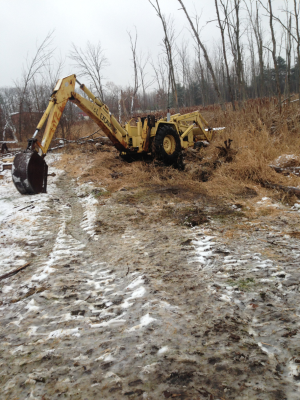 It was reasonably easy.built a road up to it from the valley below,cleared a flat pad beside it,cracked Hyd line to straighten tracks to frame,dig trench for inside track to roll into,slowly drag digger down hill slightly after Hyd lines to boom arm are cracked to lower centre of gravity,build mound of dirt to soften landing on outside track,gently stand it back up with two twenty ton diggers,call mechanic to bleed motor and check it over,fire it up and drive it back on the transporter and then back to the insurance company.one day from start to finish easy ehh!!!!How did you do that? I would have scratched it real bad.