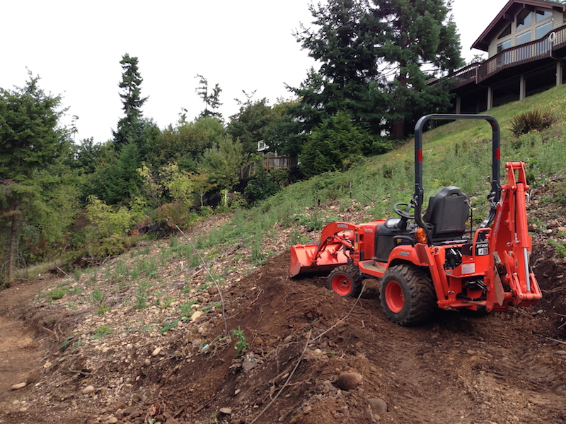 So, I guess it depends on exactly what you want to do, how long you have, money an object, bla, bla, bla. Renting an excavator for me was out of the question because I can only put in a few hours a day every so often so it is a long term project. I whittle away and the landscape takes shape slowly. Do I wish I could snap my fingers (hire it done) sure but that isn't going to happen. That said, I surely wouldn't want to traverse slopes on a regular basis with my BX (hence the terracing but that is a lot of work and expense). Takes real discipline and patience to work on sloped property I have learned. Don't get confident. Good luck what ever you do!