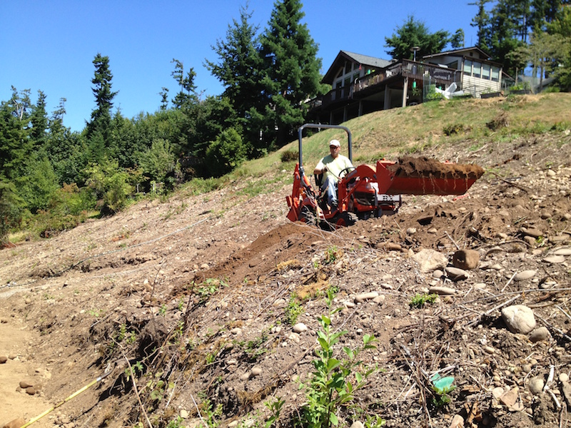 Lots of good points made. My property is steep as that in most places and steeper yet in some. And why I have been busy trying to terrace about an acre's worth with my BX. Up and down as other's have said, I do all day long. Often having to put in the differential lock to get up and always in 4WD. 2in spacers for the rear and 1.25in for the fronts. Keep bucket as low as possible. BH facing uphill when traversing. Go very very slow. A rock or dip on one side is all it takes to go from pucker to over.