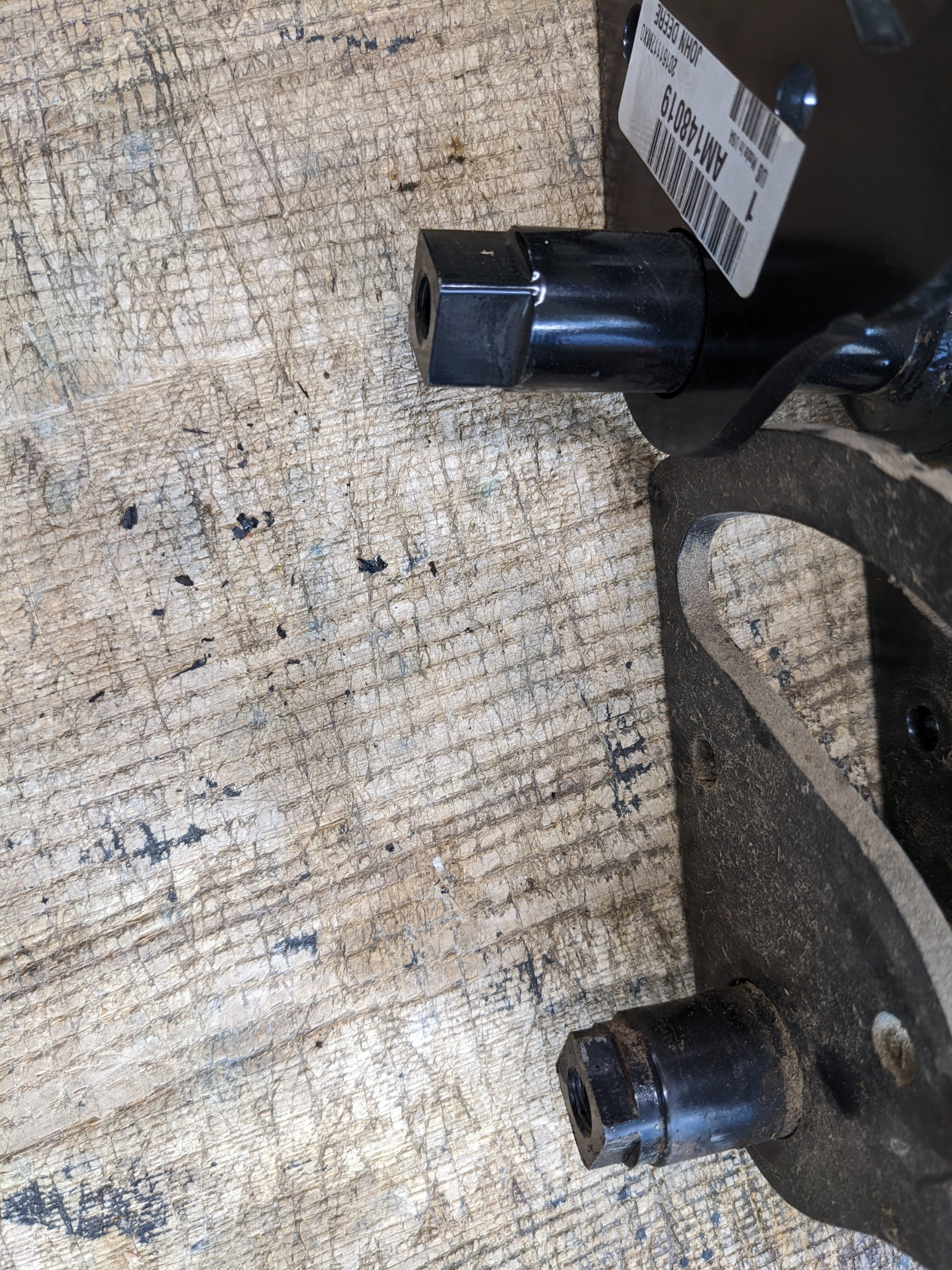 New rockshaft requires new end links and bolts also. Old one has one bolt that is LH thread and one that is RH. New one has both RH. The squares are much longer on the new shaft so teh new end links are also wider so much greater surface area. Looks like the new links eliminated the half moon cradles for the lift bolts as well. More parts coming.