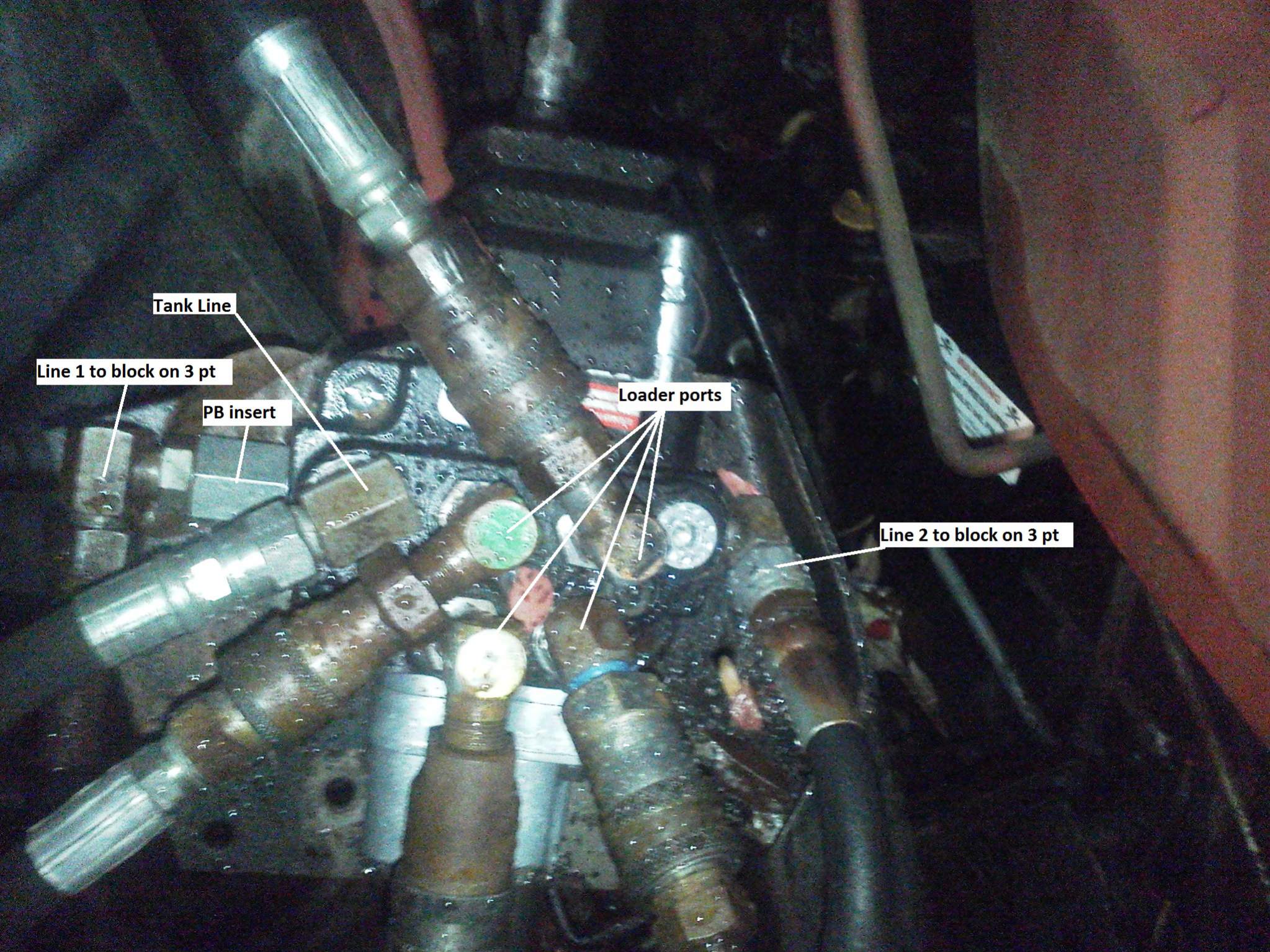 Post this in the yanmar section. There are members that have a 336 with a loader. They will be glad to take picks and tell you how their loader is connected. I believe (not sure) that there is already hp at the block you are referring to so, you may not need the pb port. I have the sister tractor to yours ,but mine is plumbed differently