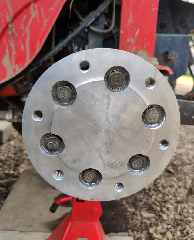 I had the machine shop make the adapters with an inner recess that matches the centre of the hub, and with a new protrusion that matches the centre holes in the new rims. That way, the bolts are just holding the two surfaces together, but the load is primarily on the centre recess/protrusion. This wasn't the case with the design I was using as inspiration, I'm pretty sure the way I did it is stronger.