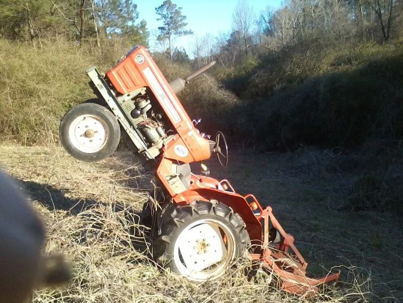 I've seen this pic. numerous of times. SMDH on it? I believe the mower was lifted. But in this case I'm not sure I would want ROP's. I'm bailing out the back but a side roll over is a major difference when it comes to the type of roll over to have ROP's.