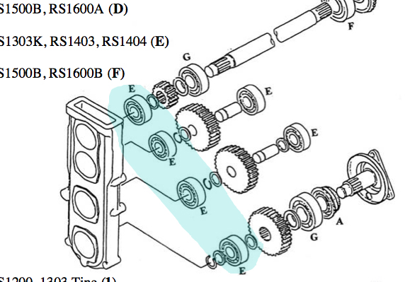 When I took the cover off this case, the top gear had no bearing on it, it just had the clip holding in the gear, and you could see the bearing behind it missing balls.