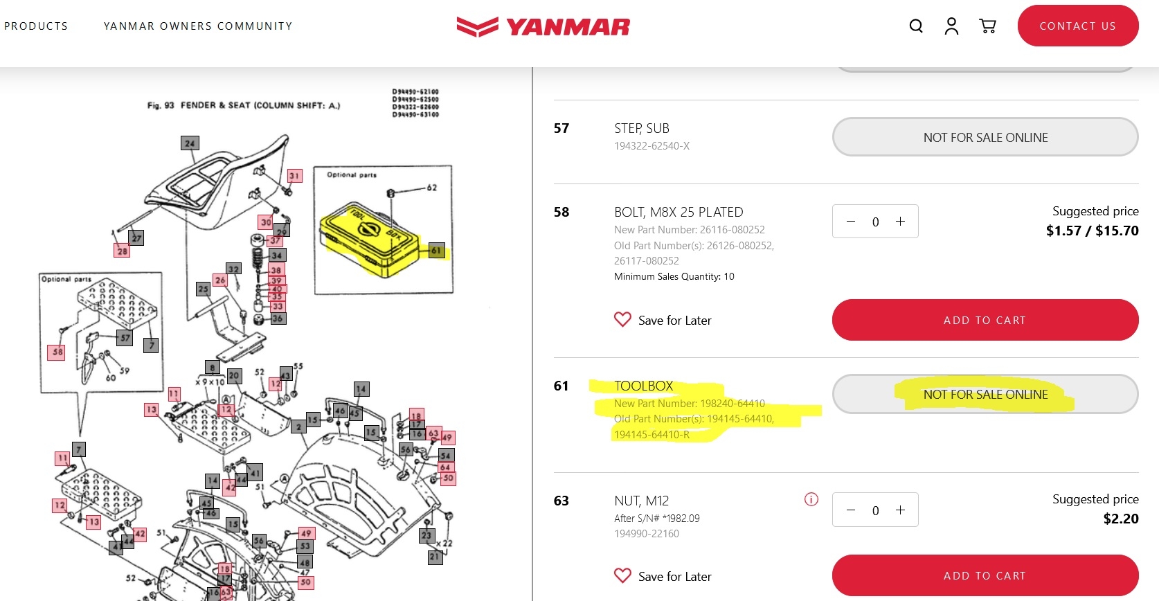I got one for free from another Yanmar owner who blessed me with it for all the help given to others on the tractor sites. It was still the red faded color for being 40 years old.