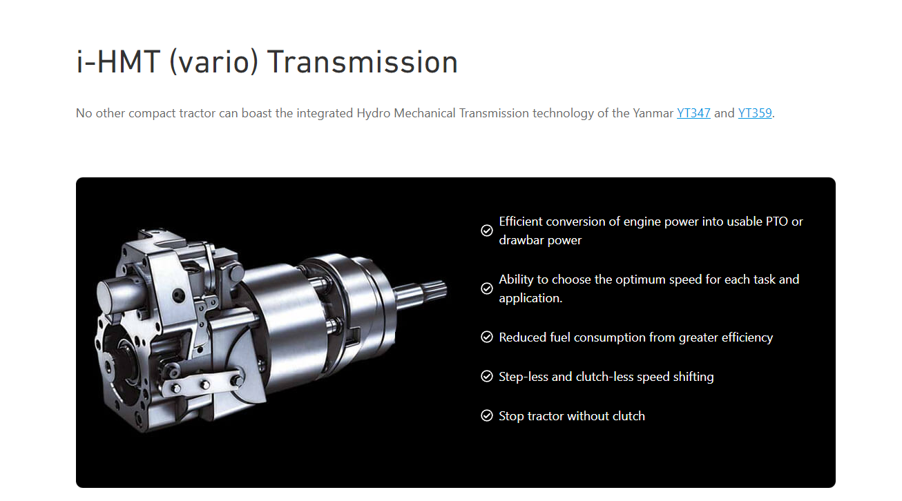 You need to stop trying to compare the Kubota Hydro to the Yanmar's I-HMT. Saying it several posts in a row, don't make it so bro.