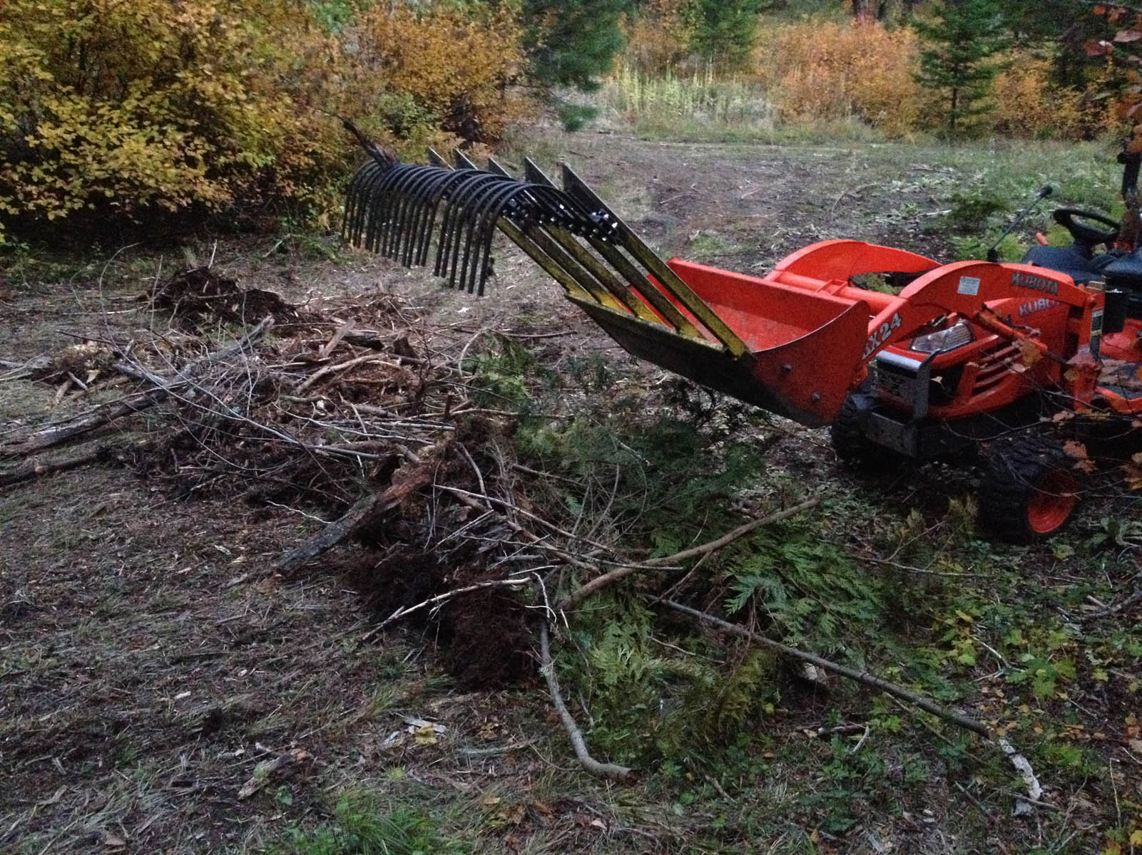 Have you considered an adapter to put it on the FEL bucket? I have been using stick rakes on the far end of a brush fork, I like it, can stick it way under a bush and drag out a big pile of sticks. And up front I can see better, and don't get a crick in my neck. But there is a lot of backing.