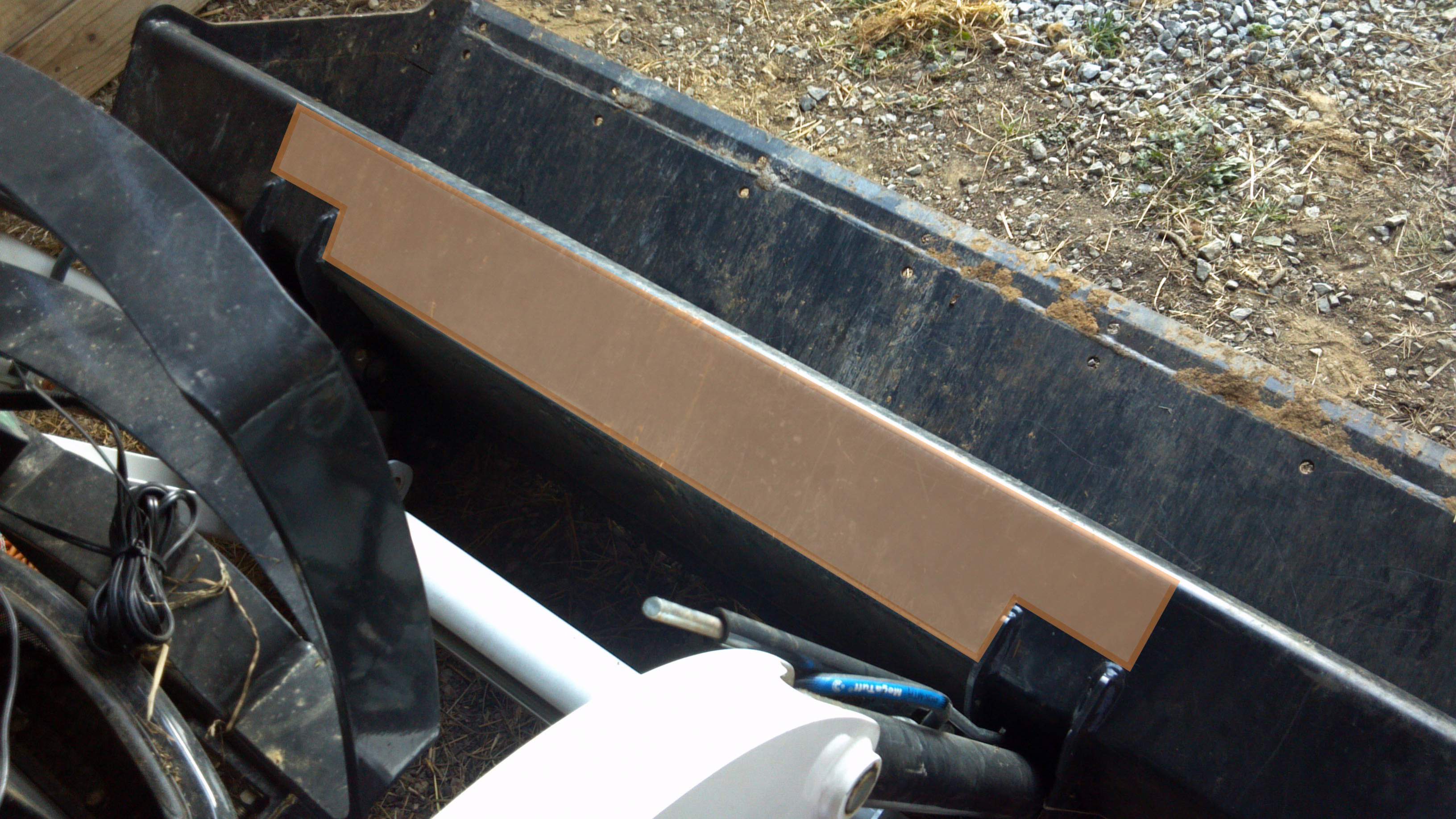 I know that I need not to have the hooks outside the lift arms, but I would like to have them farther out than that, and I would really like to have them in line with the lift arms if at all possible. What about doing the reinforcing sheet like this: