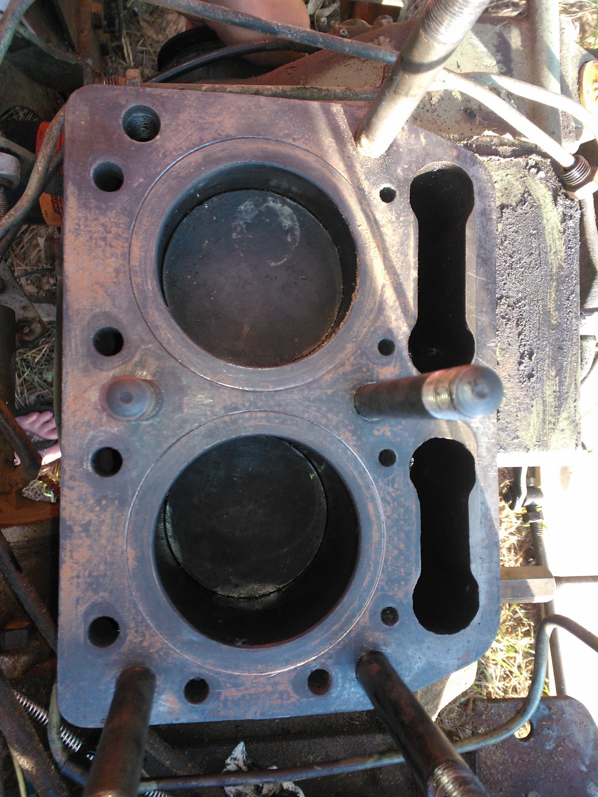 I know nothing about hones, except my friend is a fork lift mechanic, and he said if I put in new rings come by his shop and I can borrow his hone. I had no idea why, just know he knows his stuff. Now I know- Thanks. I have learned a ton from this forum. Ok here are the over head shots I promised. Tonight I also pulled the #2 piston (closest to radiator). Not 100% sure but I think I will be buying pistons and rings. WP_000566.jpgWP_000571(1).jpgWP_000568.jpgWP_000567.jpg