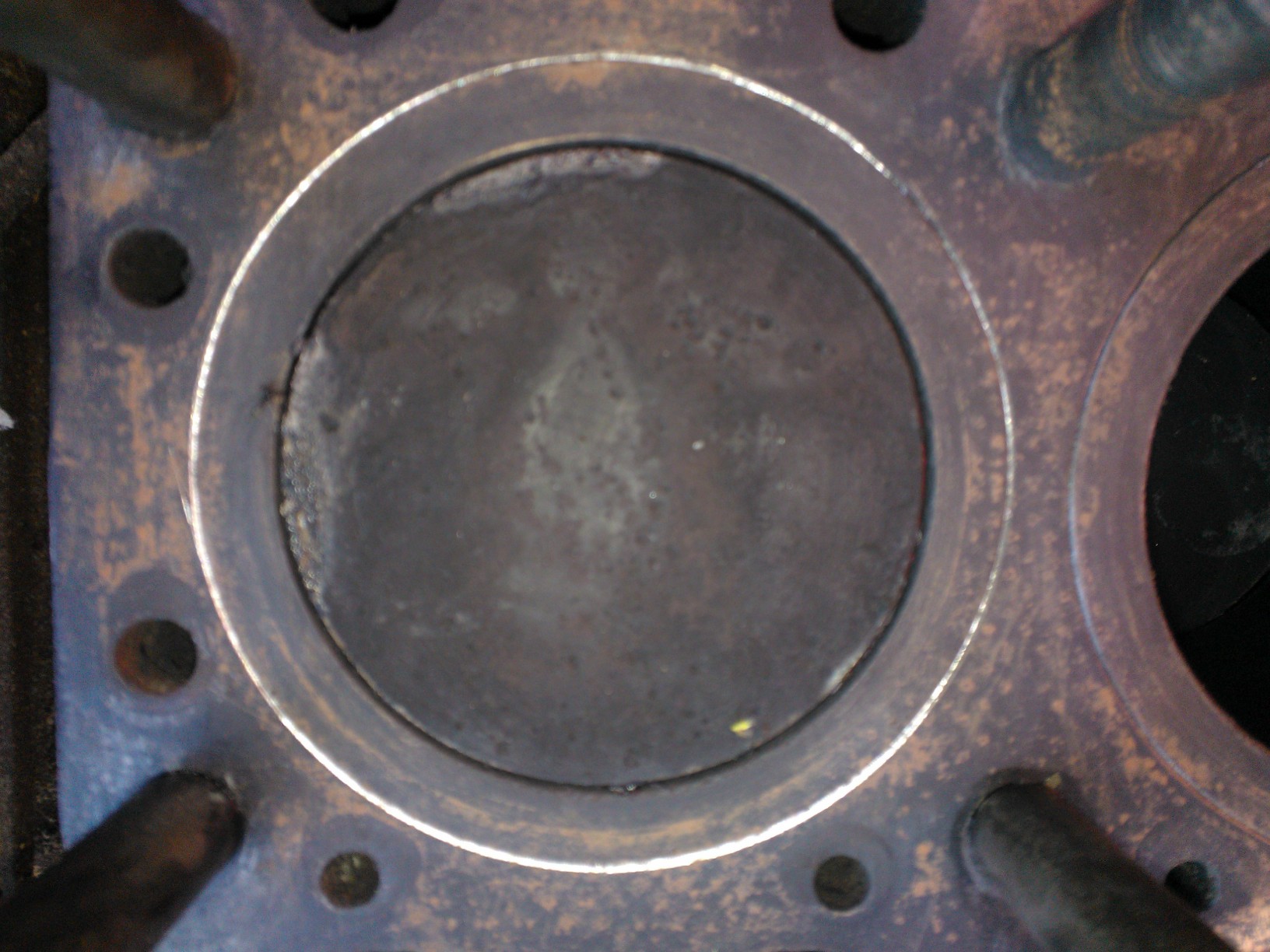 I didnt feel or see any crosshatch. Cylinders were pretty smooth. I do however have access to a hone. I am going to pull the pistons out and put new rings, I was getting a little blow back before head gasket issue. I plan on having this old girl a while so I want to put some money in the engine while im in there. I will post top of block piston shots tonight. There is some damage to the top edge of the pistons maybe its nothing. I will be interested in getting a second opinion.